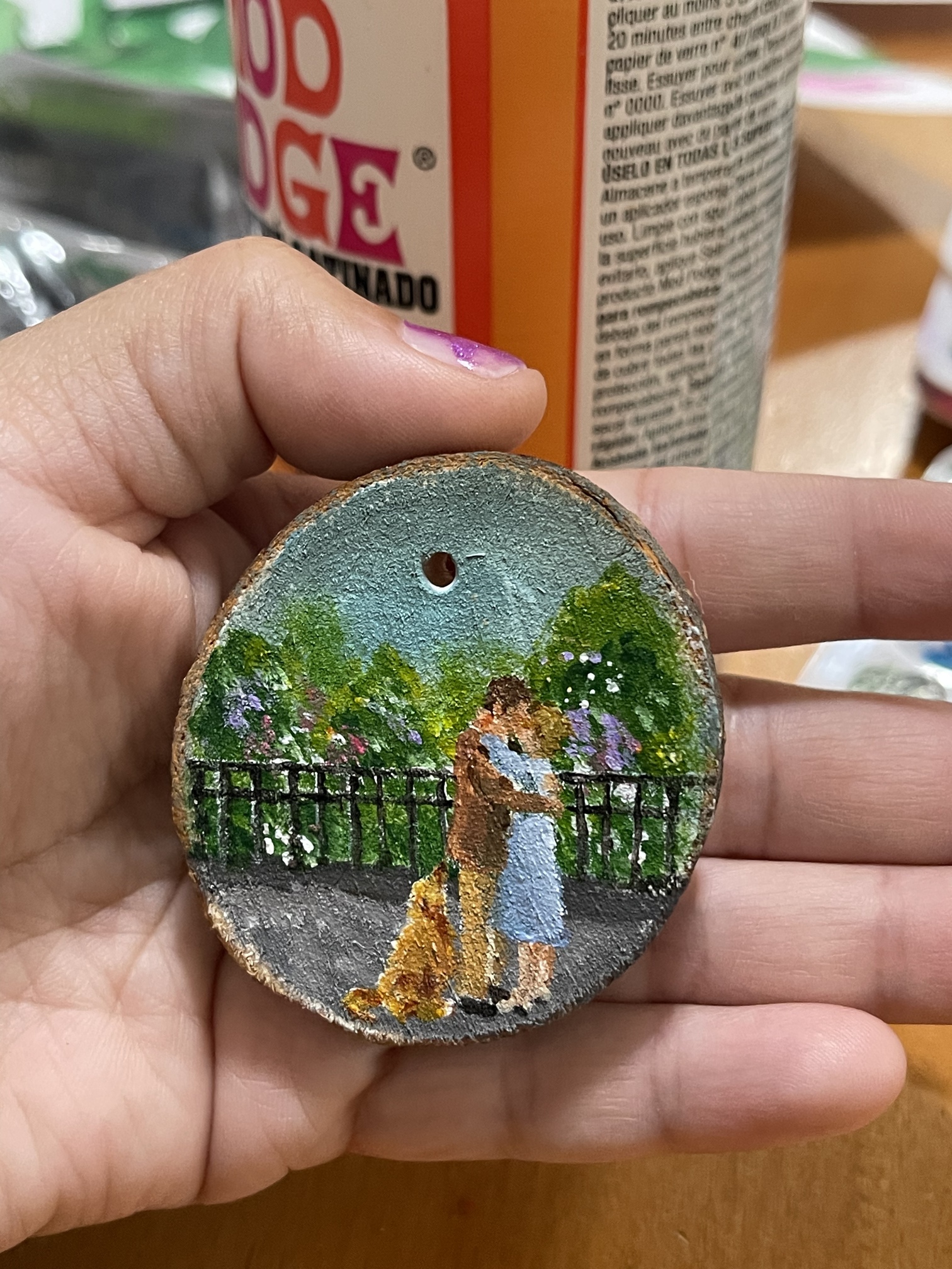 Here’s a mini painting on wood ornament I did of one of my favorite non holiday holiday movie, You’ve Got Mail.