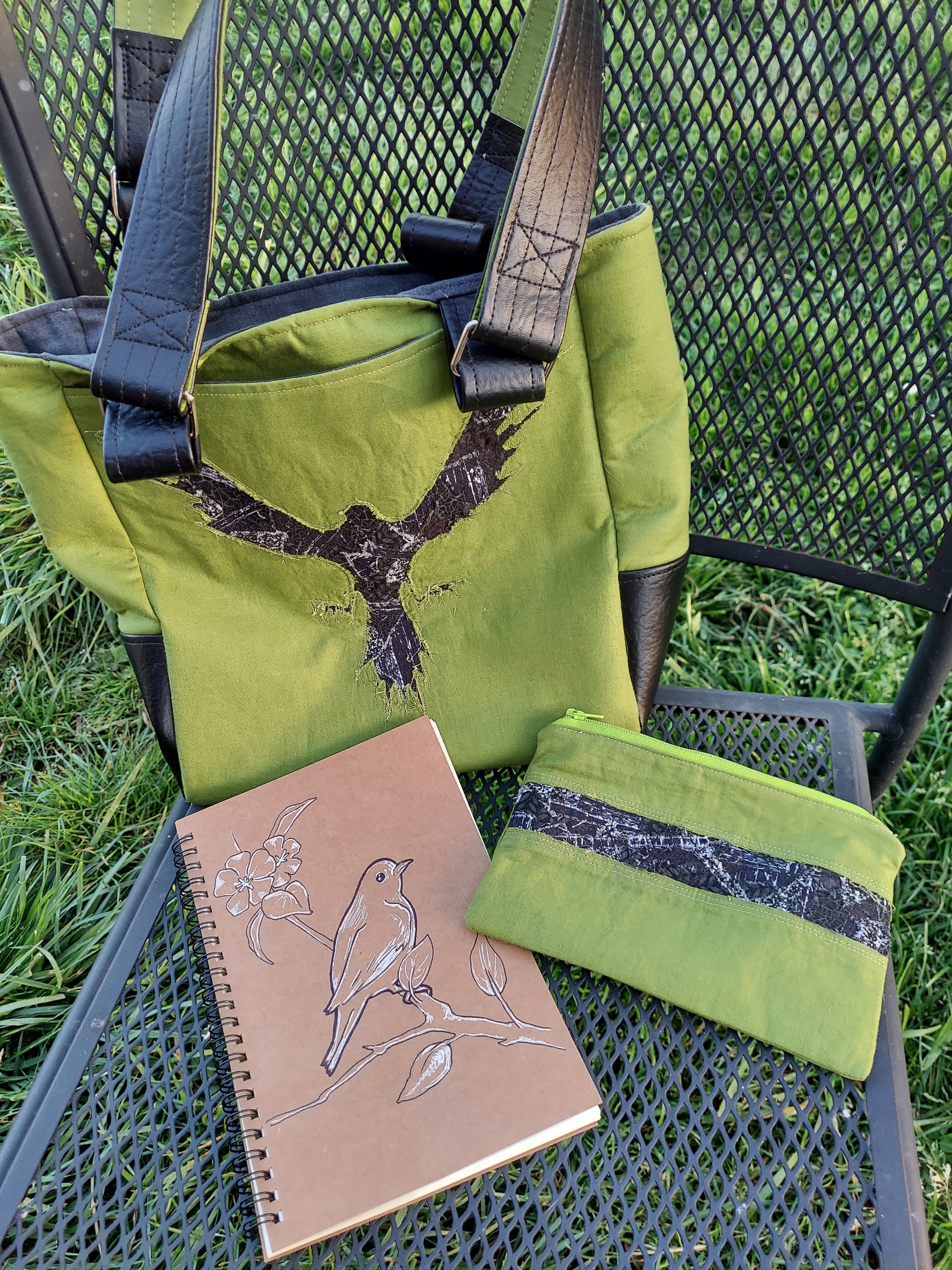 This is a great package! The tote is awesome (the appliqué looks fantastic) and the pouch is the perfect accessory. That notebook is adorable! I love the minimalist coloring on the drawing on the front.