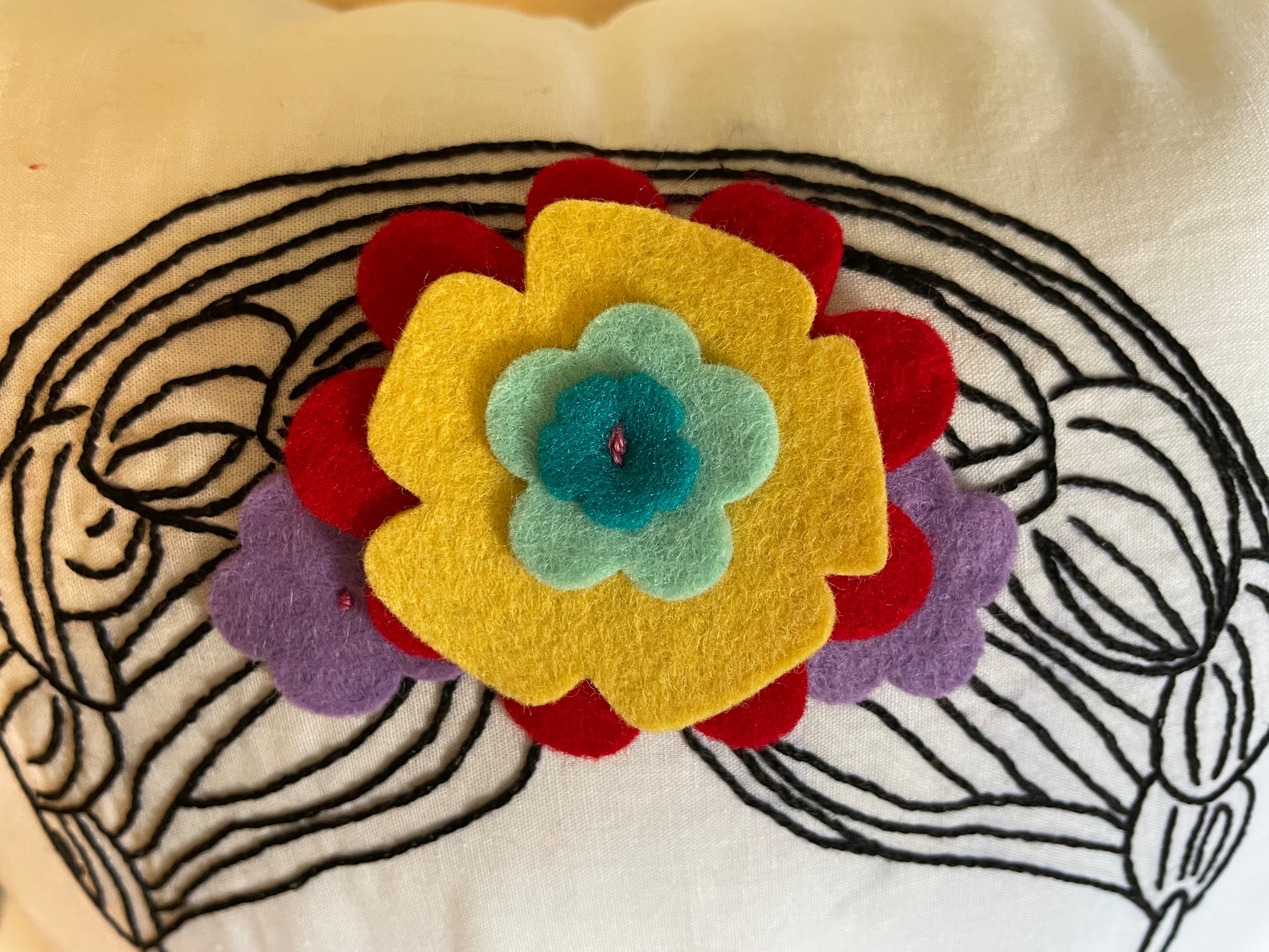 What a delicious package of Fridas! I’m kind of overwhelmed by the awesome myself… each and every piece is worthy of praise, but where to even start? Kittykill’s stitching is always exquisite and her felt embellishments always just take it right to the tippy top.