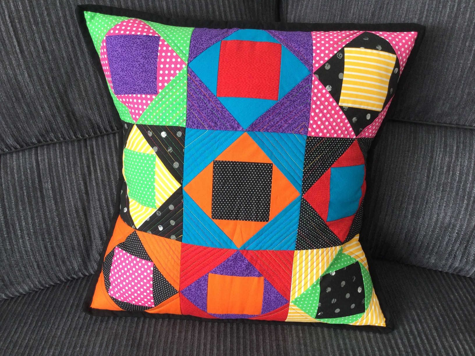 I got my own fabulous thing today from @PrincessP!! I had a special request for a cushion cover in bright colours. Our grey couch has several red/black/white/grey cushions, but I felt like it was time to add more colour. Look what she came up with!
