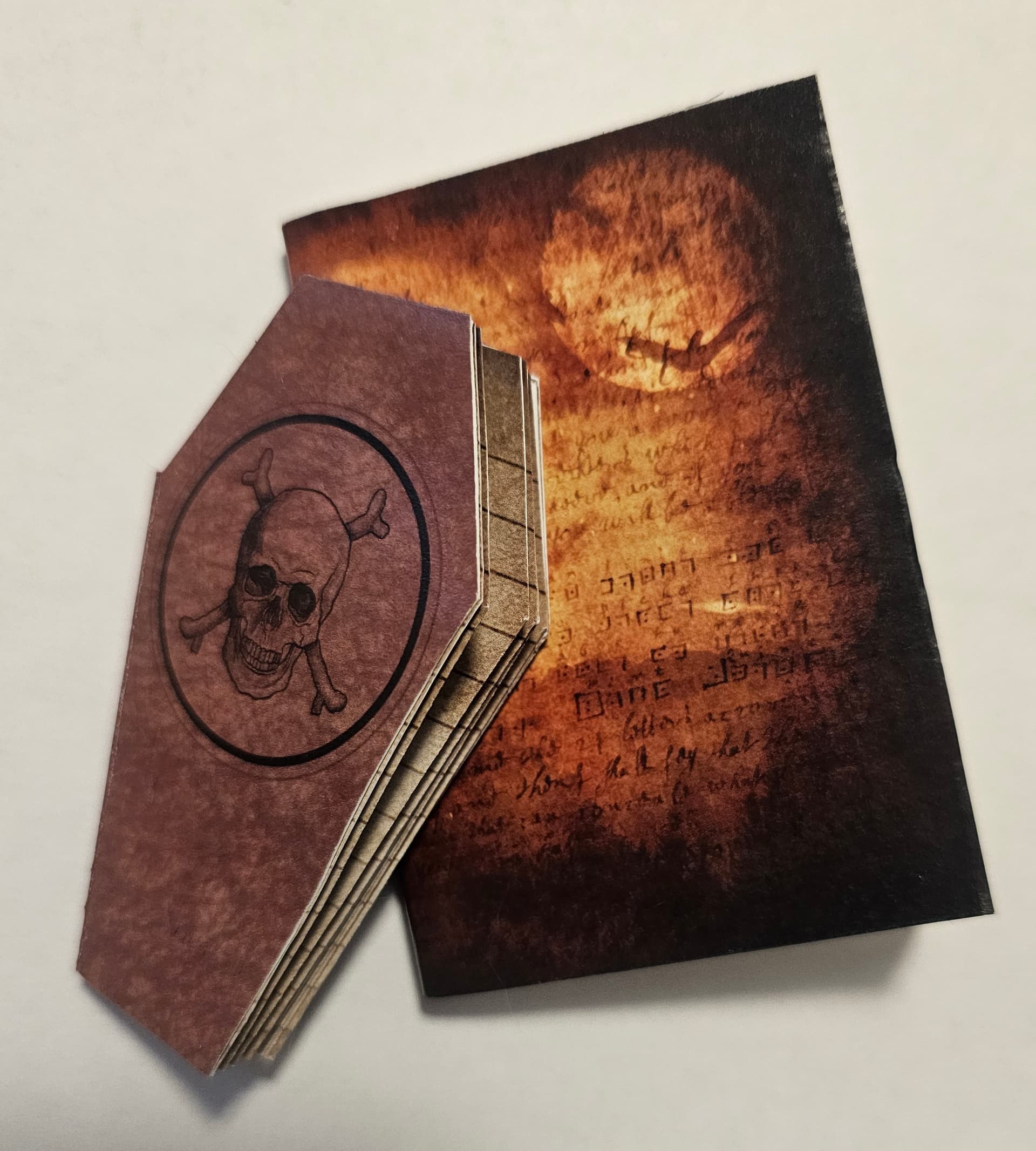 I got some files from Etsy and then pulled some more from the internet. I made a collage of the items so that they reached the ATC next to it. Then, I dropped red alcohol ink on it for the blood. I have my moments with papercraft. It’s not my best medium, but I still try. I thought it turned out neat, and my partner liked it, so I am happy.