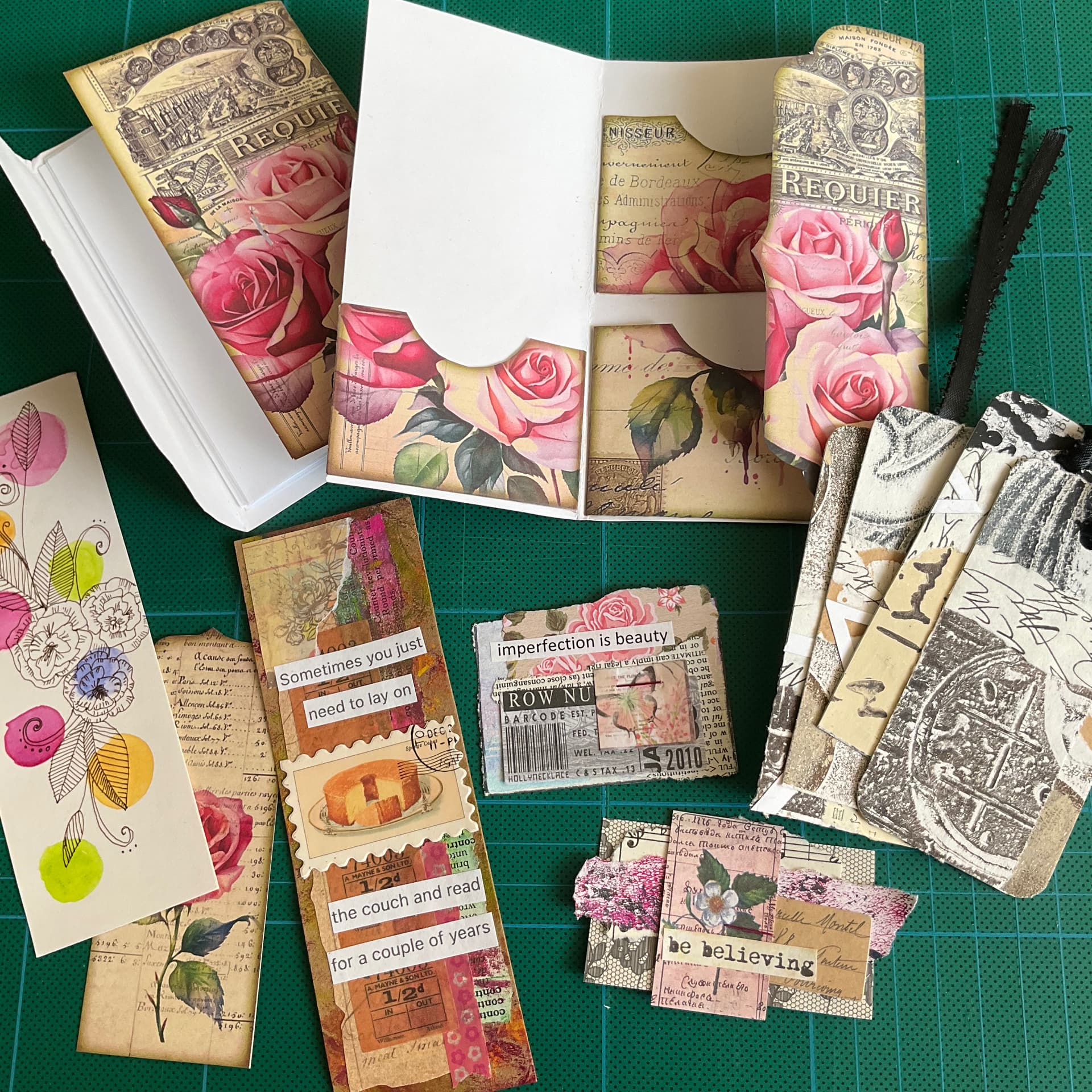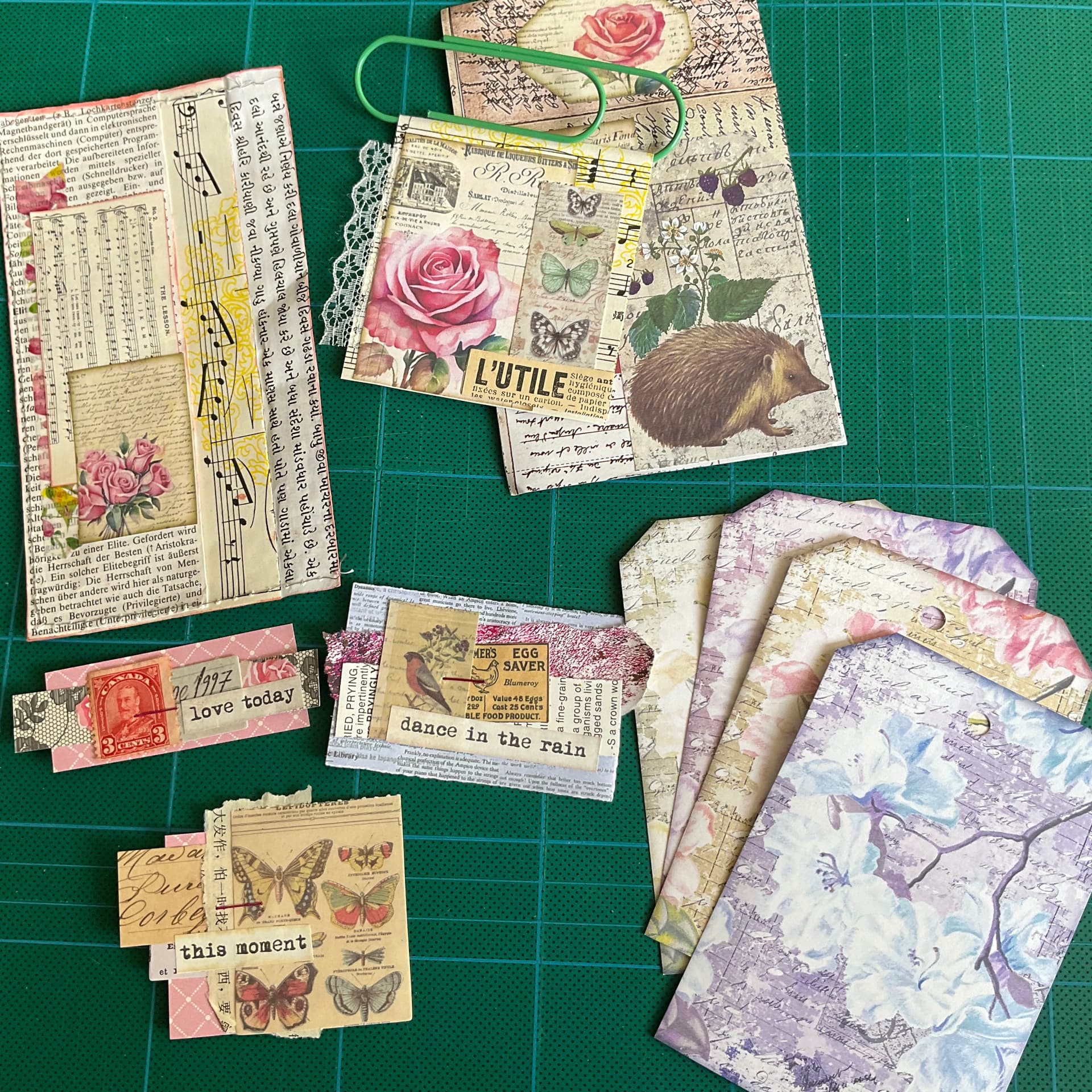 … huge swag of vintage floral things - pockets, hidden note, tags, notebook, focal points - so much pretty!! I recently revamped a nice journal (that formerly had a real estate logo on it) with a botanical theme, and these pieces will work so well with it - just perfect.