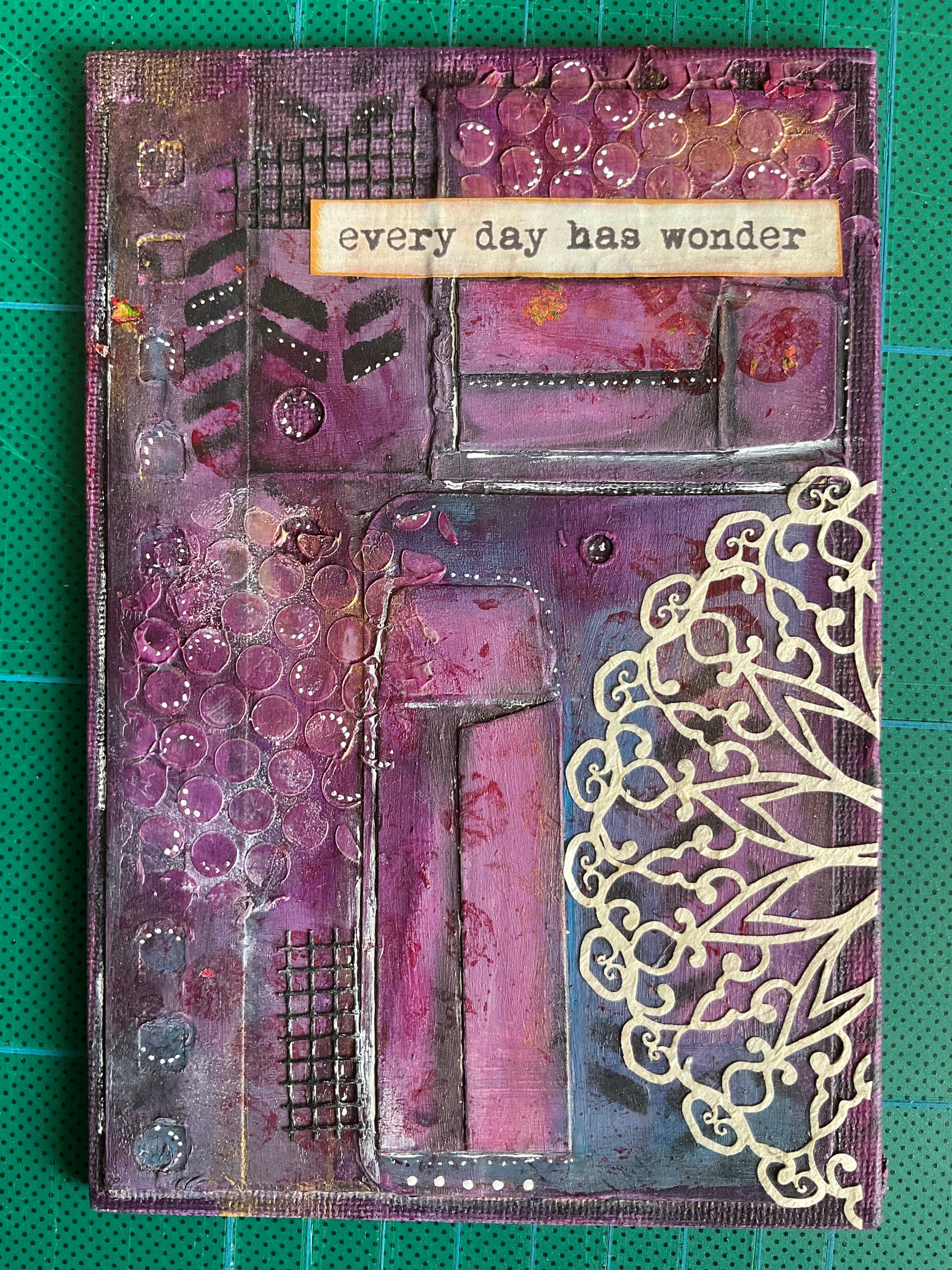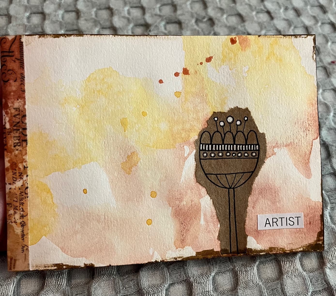 Closes up of the fantastic textured 4 x 6 artwork - this is in my sewing room already.