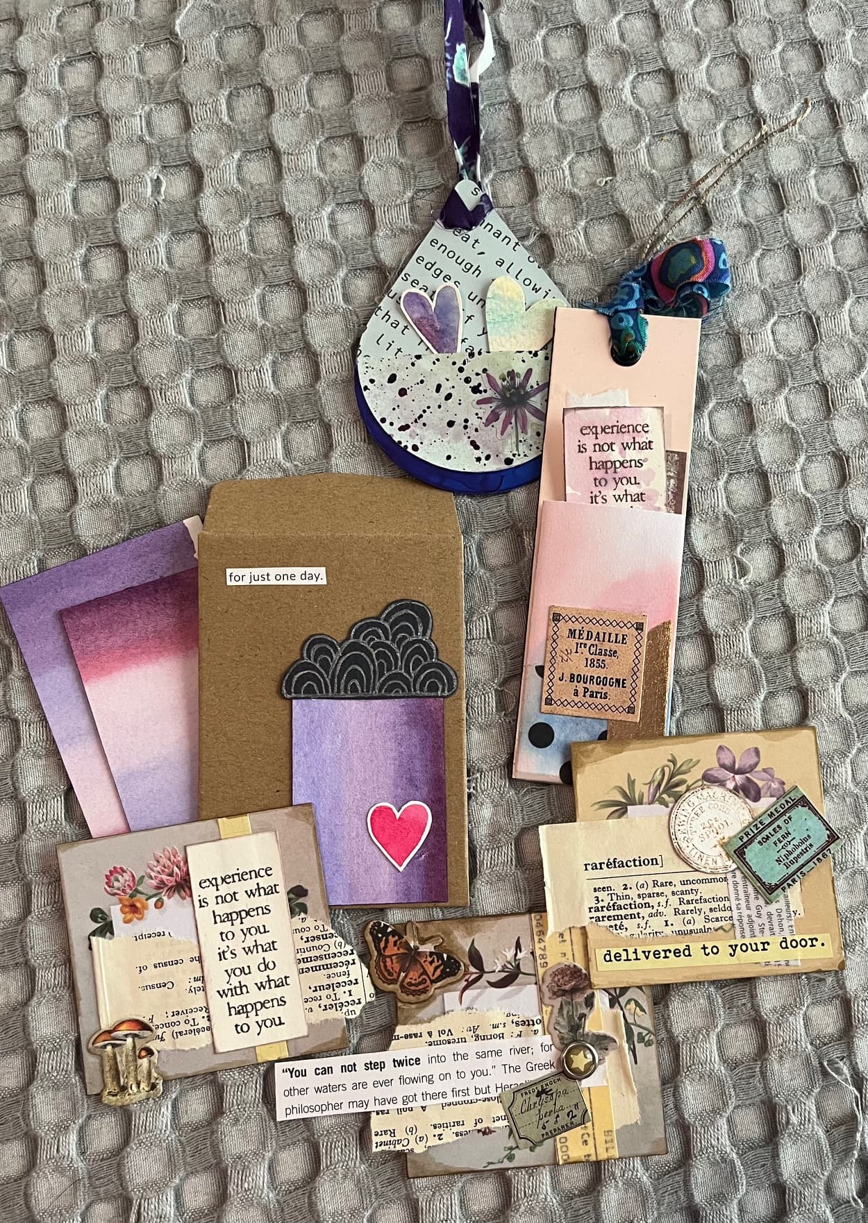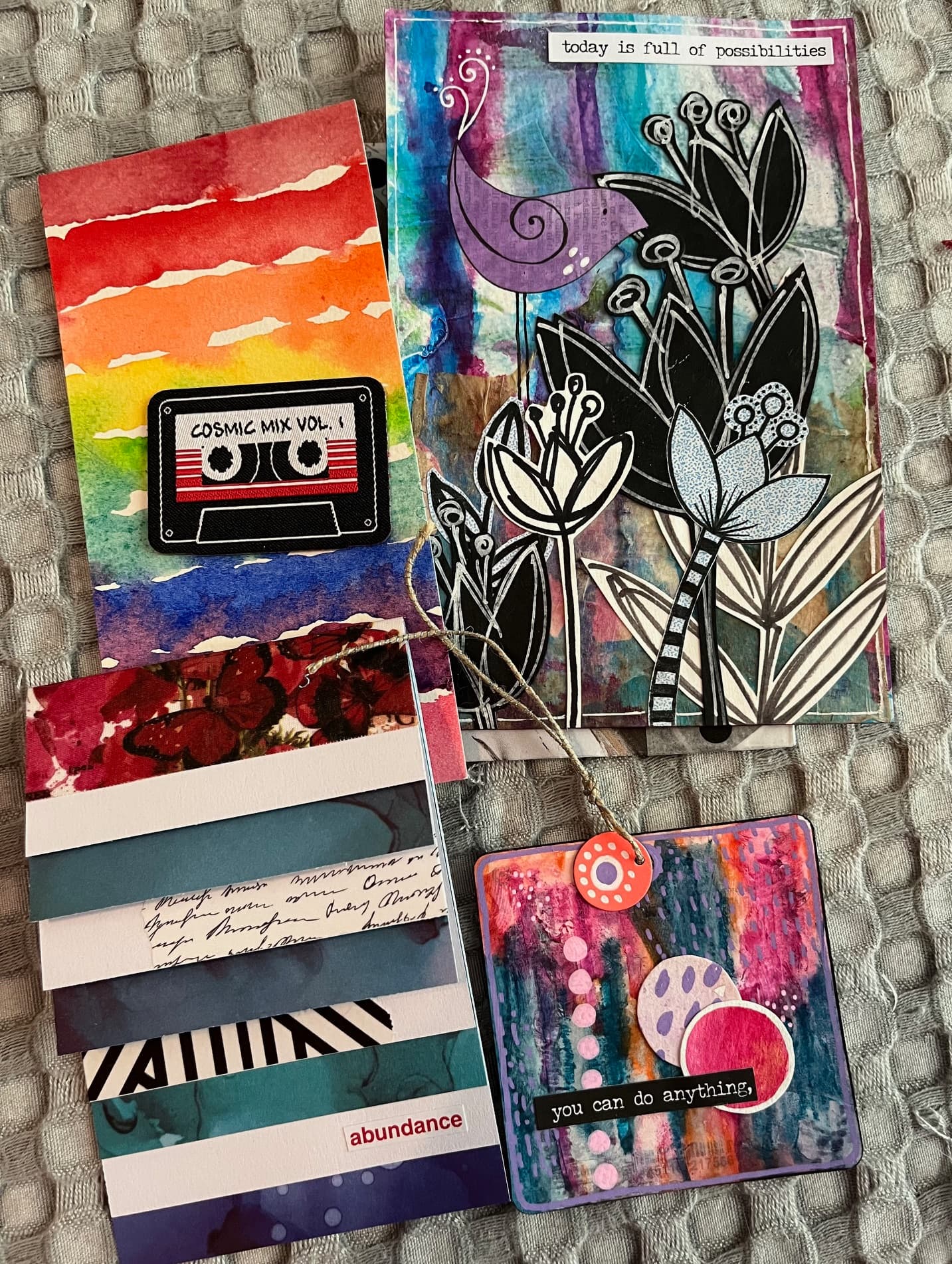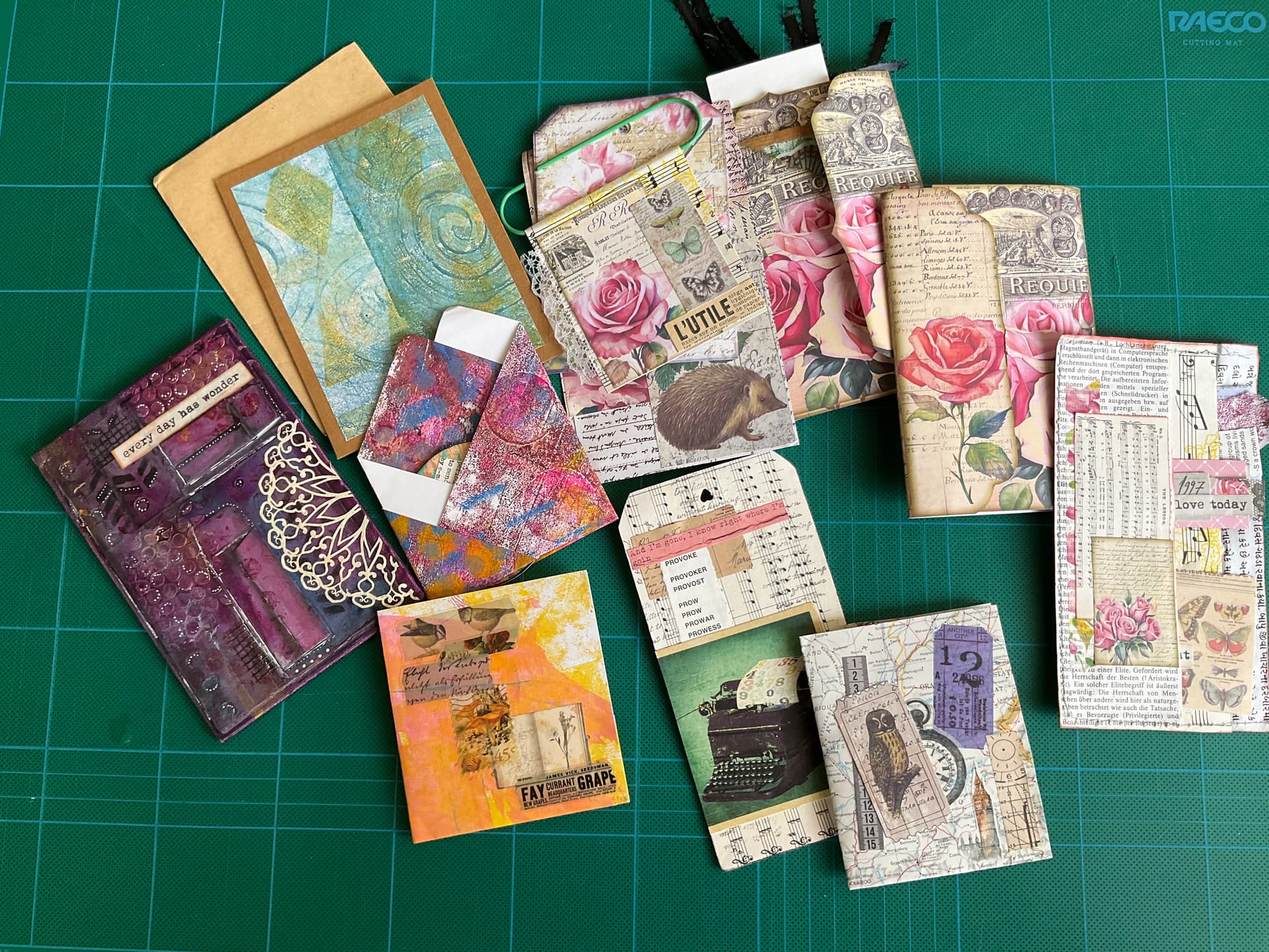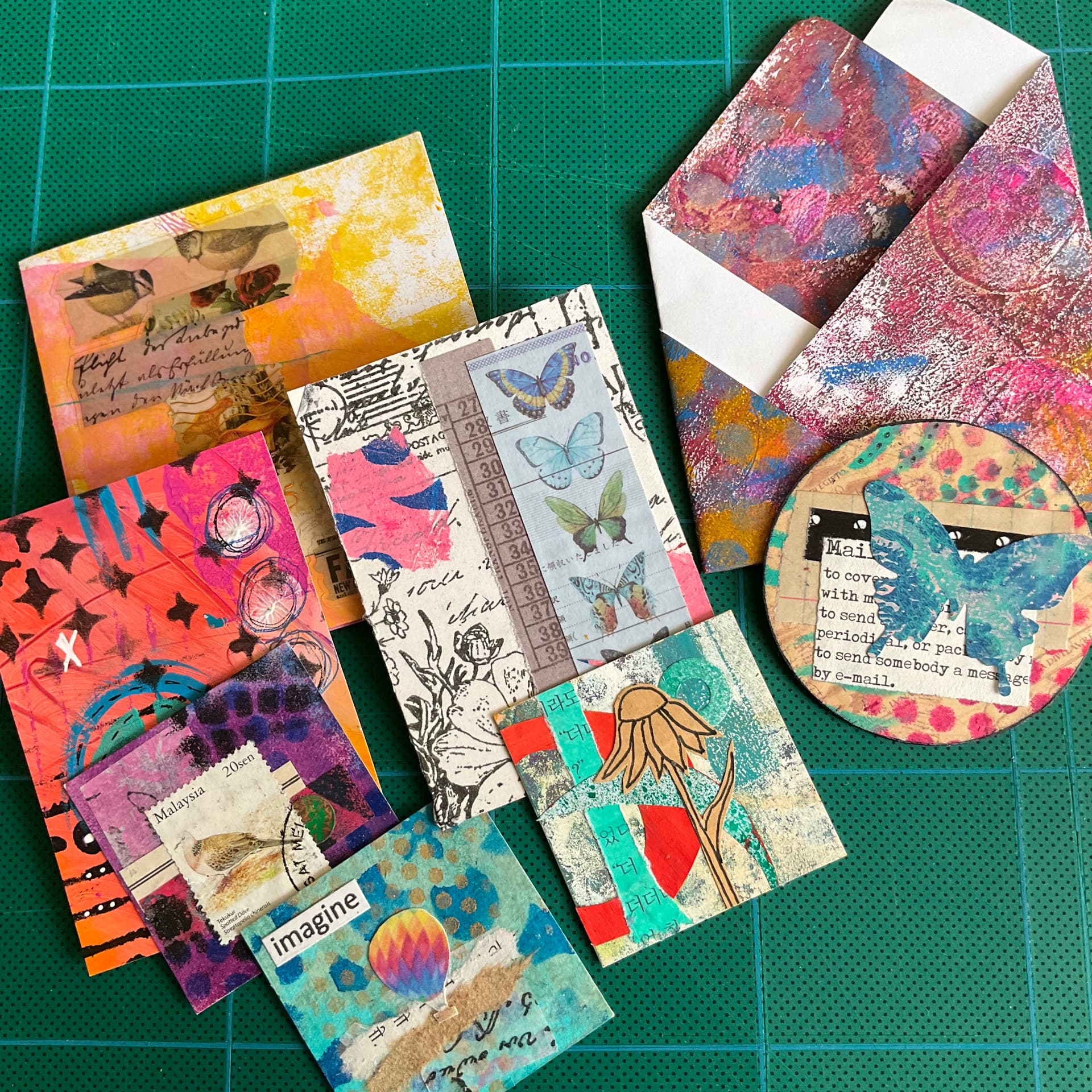 Wonderful collage and gelli print pockets, folders, and mini-art …