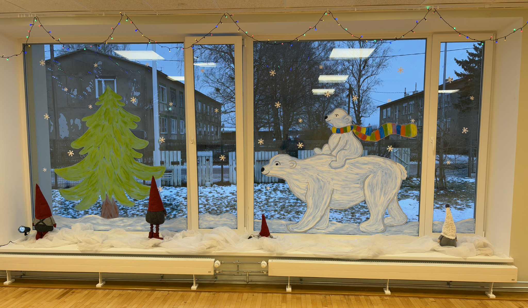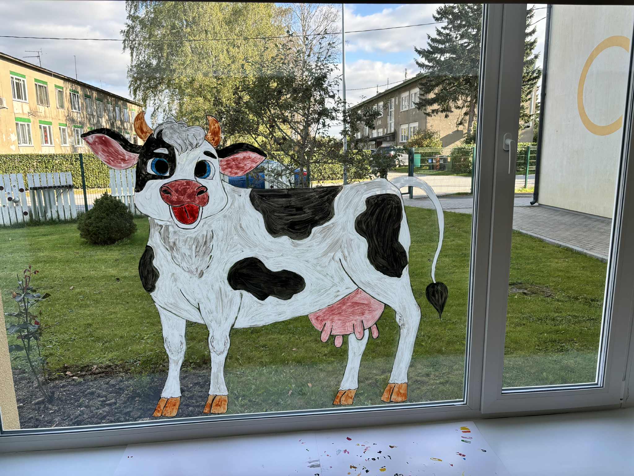 I remember painted windows in elementary school when I was a kid, but I haven’t seen them in a long time. The Christmas window display is my favourite too, it’s such a nice scene with the painting, the lights and the decoration in the windowsill. But I like the cow too, especially with the grass in the background.