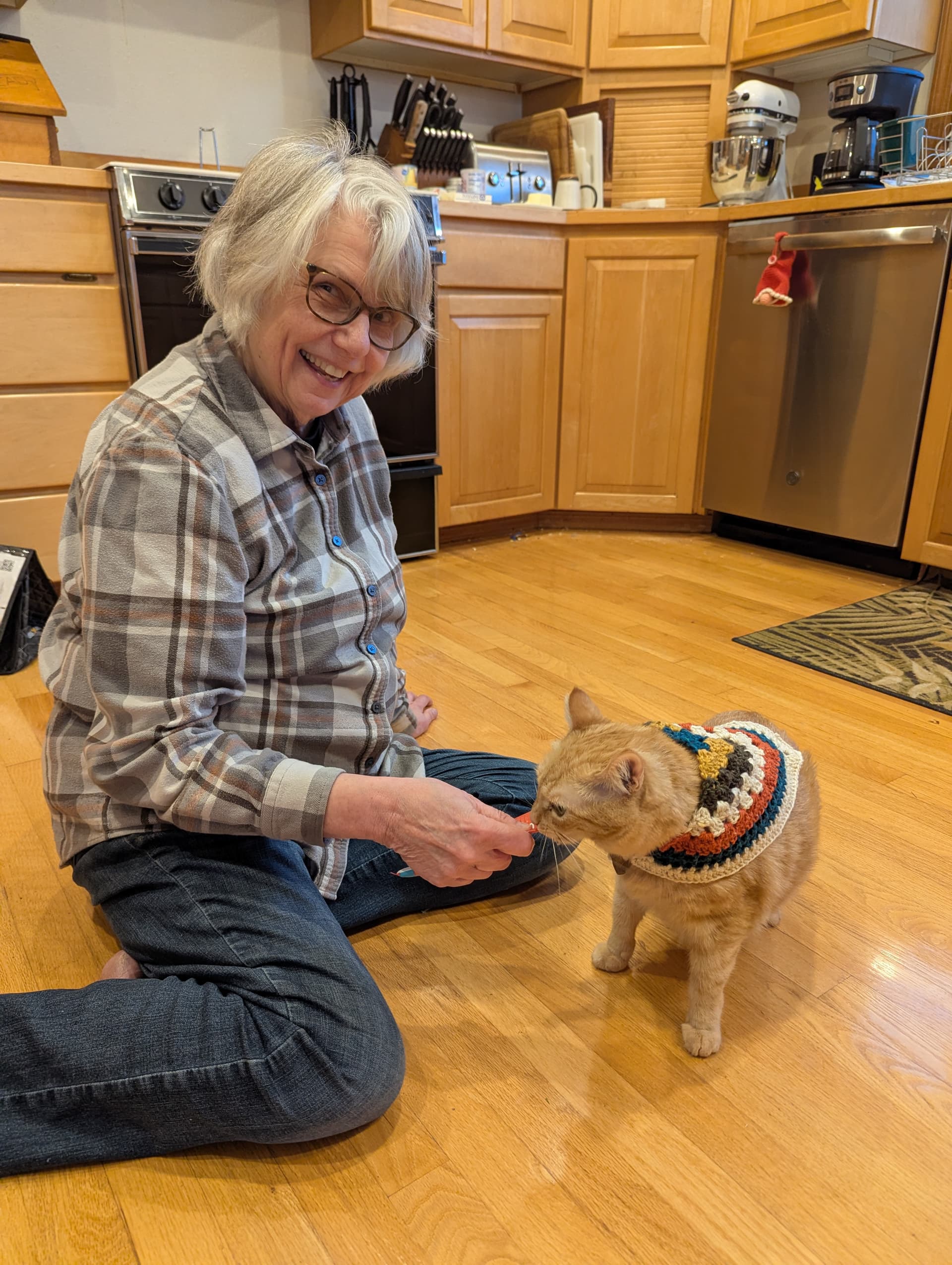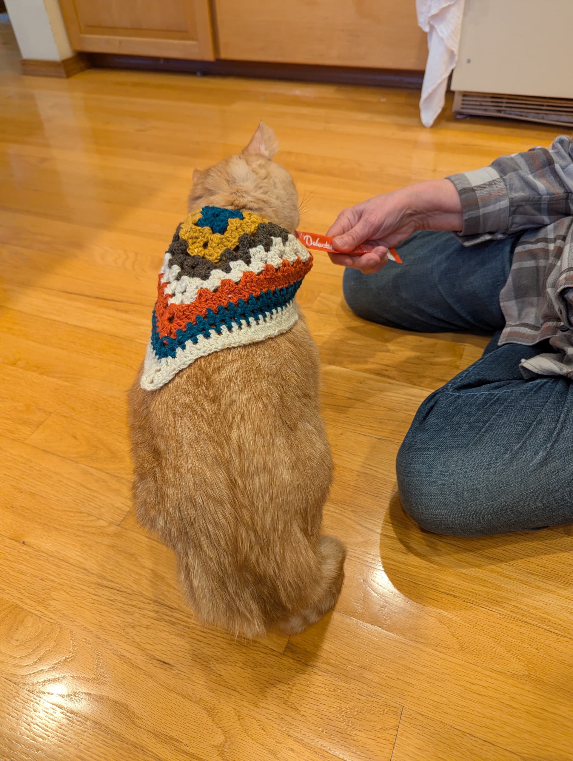 I didn’t know my kitty boys needed shawls until this moment. I doubt they’d wear them as gracefully though. Paprika is utterly adorable and I love the colors in her shawl. It’ll be so cute when you have a matching one as well.