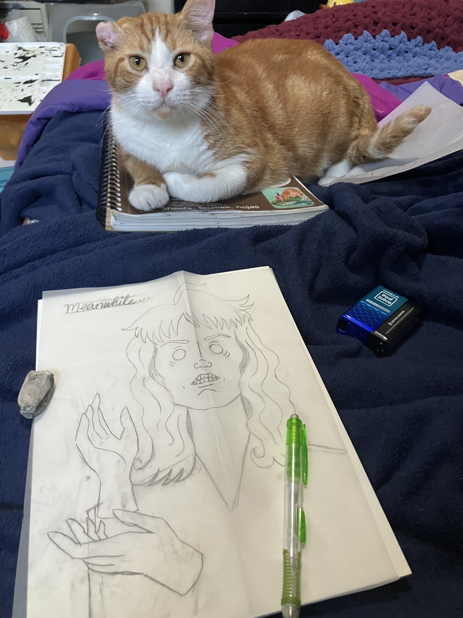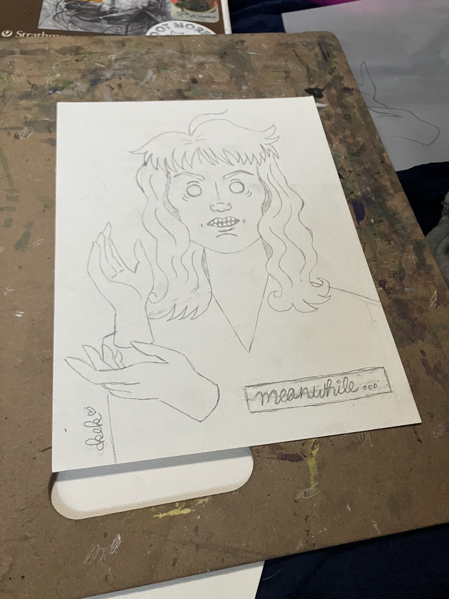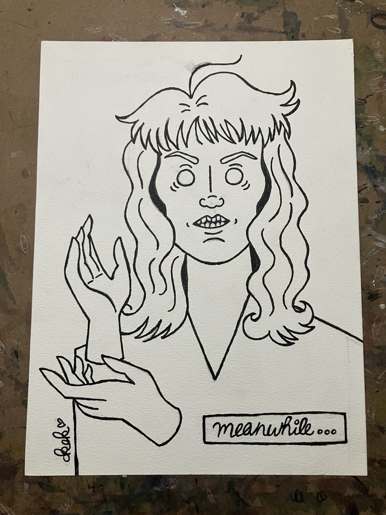Anyway, this is Laura Palmer from Twin Peaks in the Red Room doing her “Meanwhile” hands. 9x12. Watercolor and crayons…