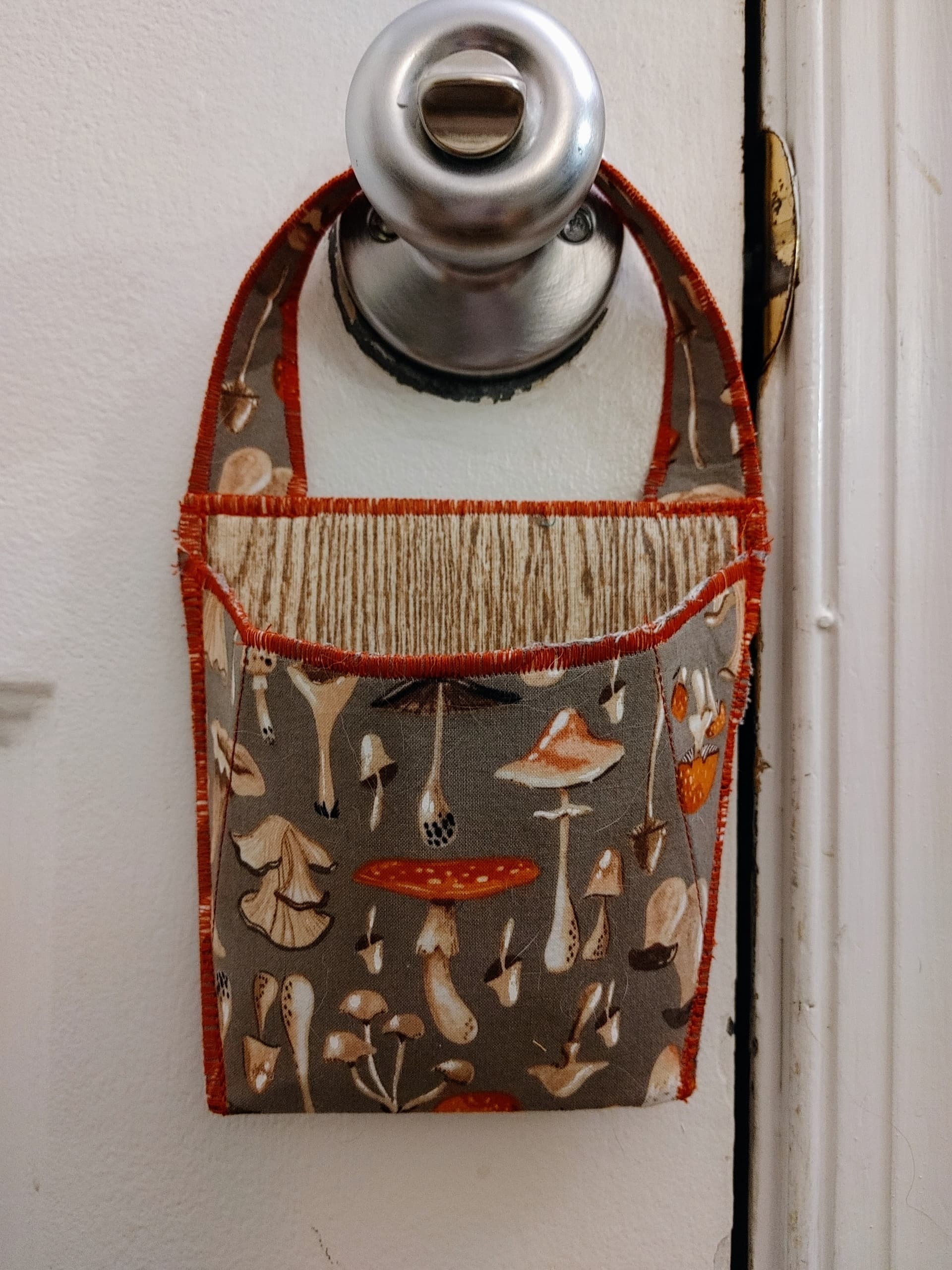 I used all scrap fabrics for this project, except for the stiff stuff interfacing. I had to buy that, but I really wanted to try the pattern. The mushroom one might go to my sister.