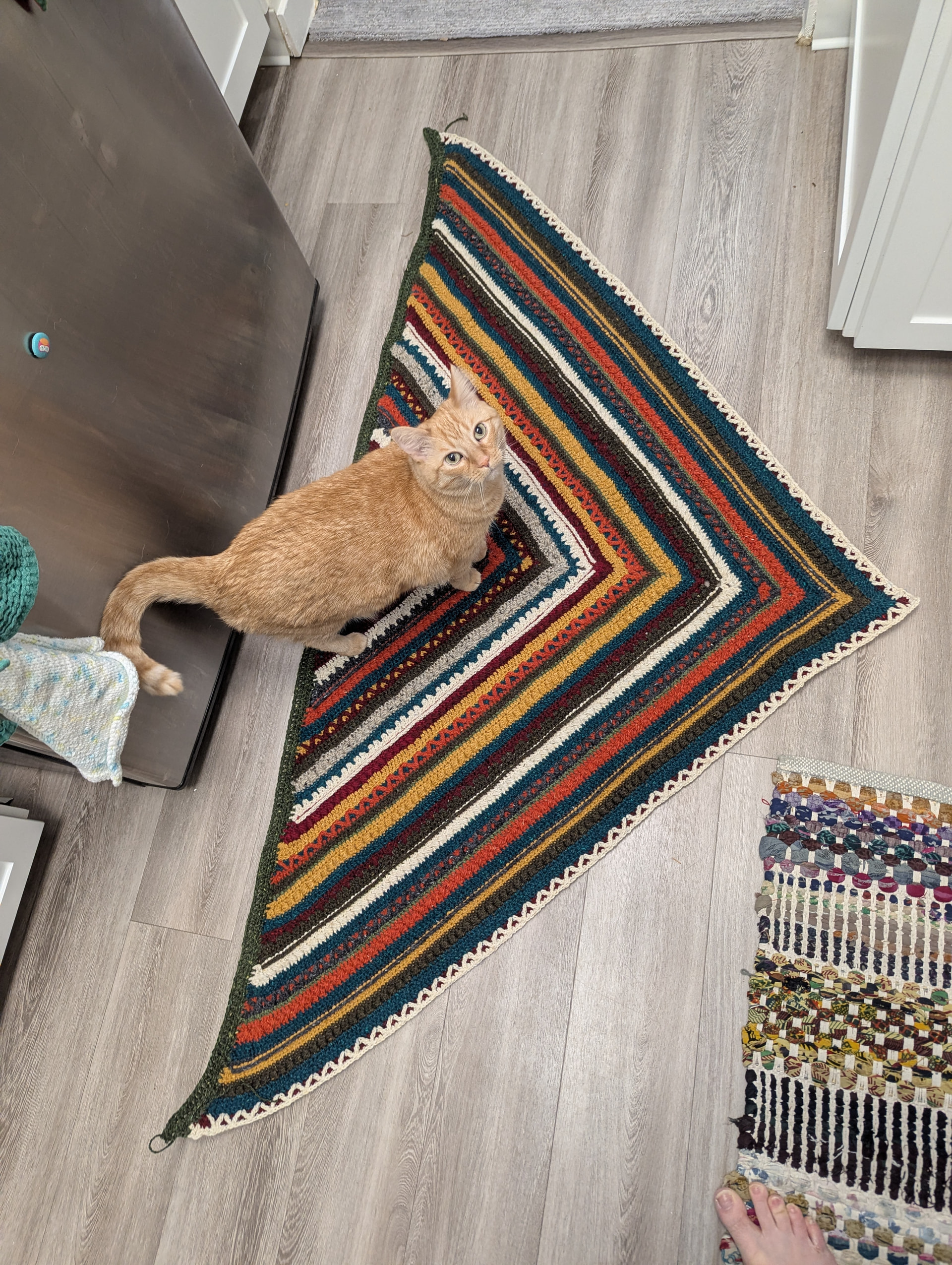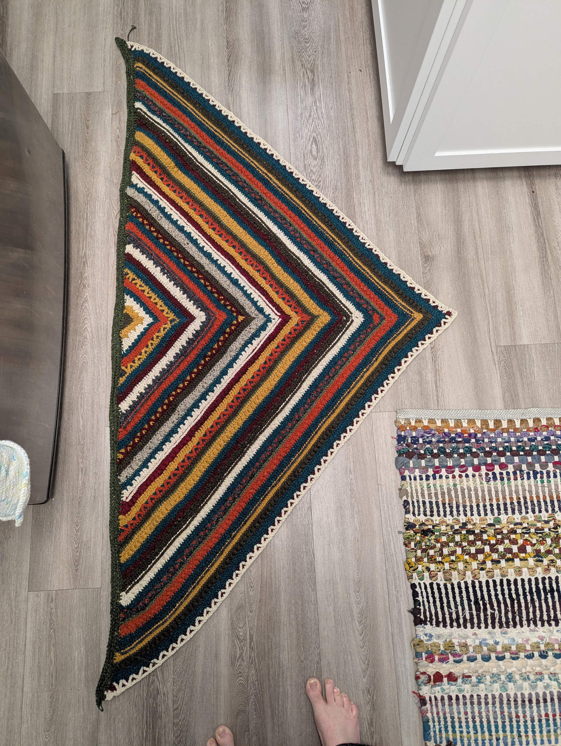 To ease your mind…when it is worn, or used, like a blanket, the edges are hardly noticed at all except by you…it is a lovely shawl as is and the border will just make it fit better and show that pattern at the back.