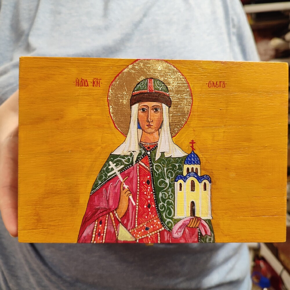 Or famous literary and historical figures like @racky’s Marie Antoinette altered tin, @Edel’s Saint-equal-to-the-apostles Princess Olga painting, @Bunny1kenobi’s Vampire Queen of Hearts.