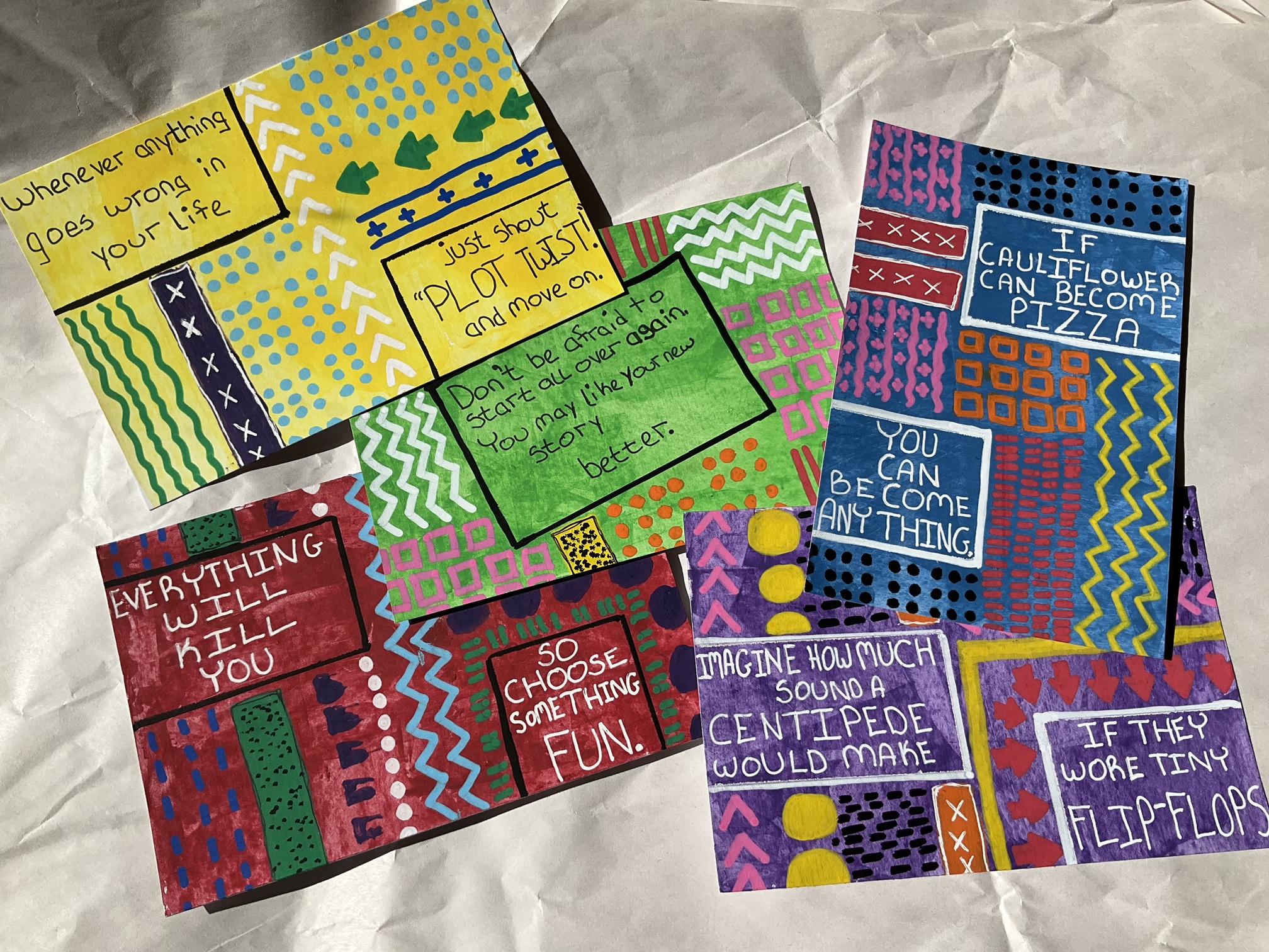 Those are so bright & funny. What a great idea to make cards 4X6! I’m so going to copy that idea.