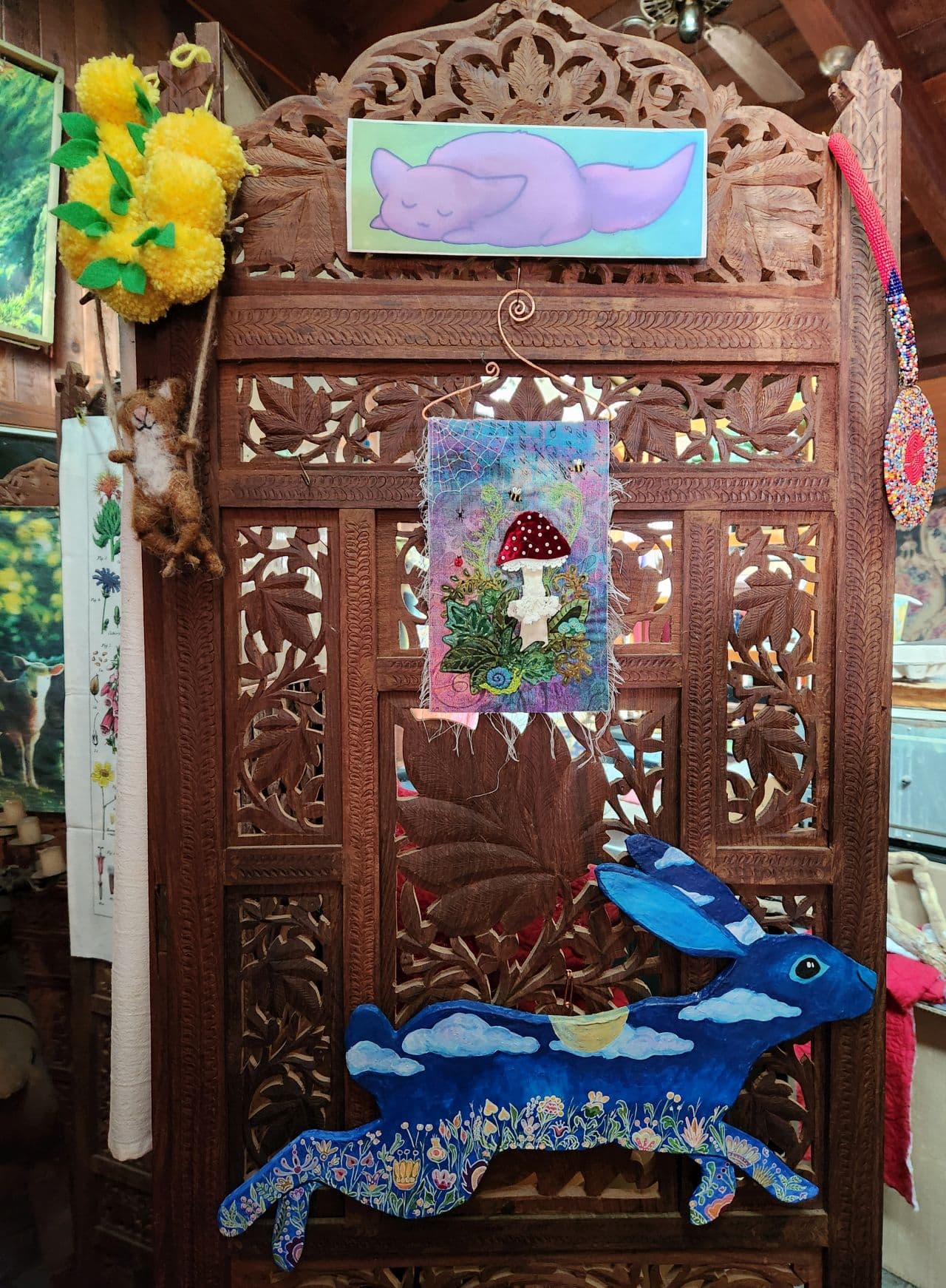 Awww, I love it. That mushroom fabric art is gorgeous!