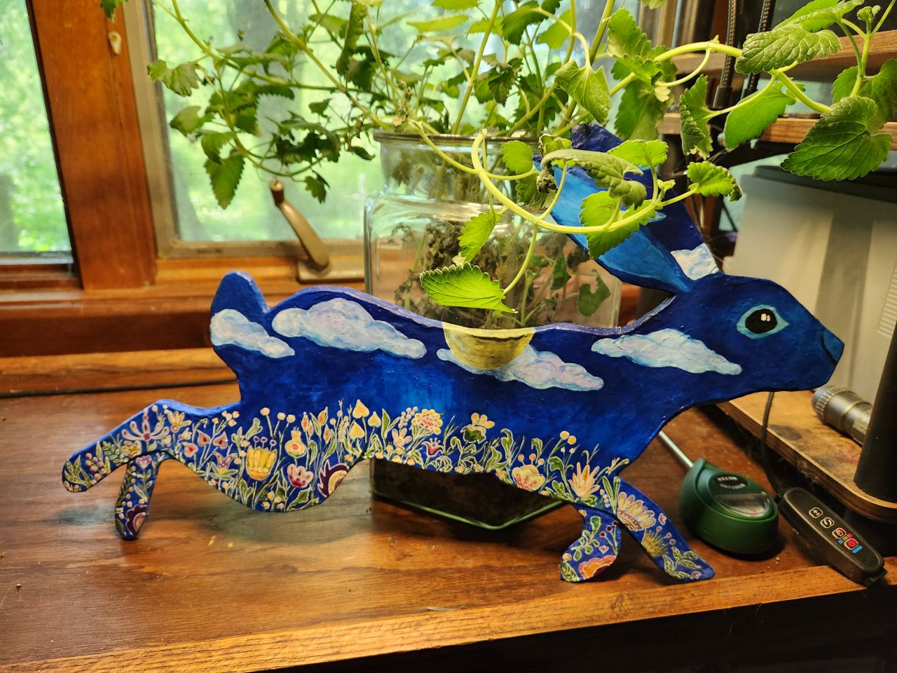 Oh, wow! I adore everything about this bunny. The colors are rich, the flowers have so many details, and the open sky is a perfect counterbalance to that garden of blooms. Even the two tiny white dots in the eye are the perfect choice.