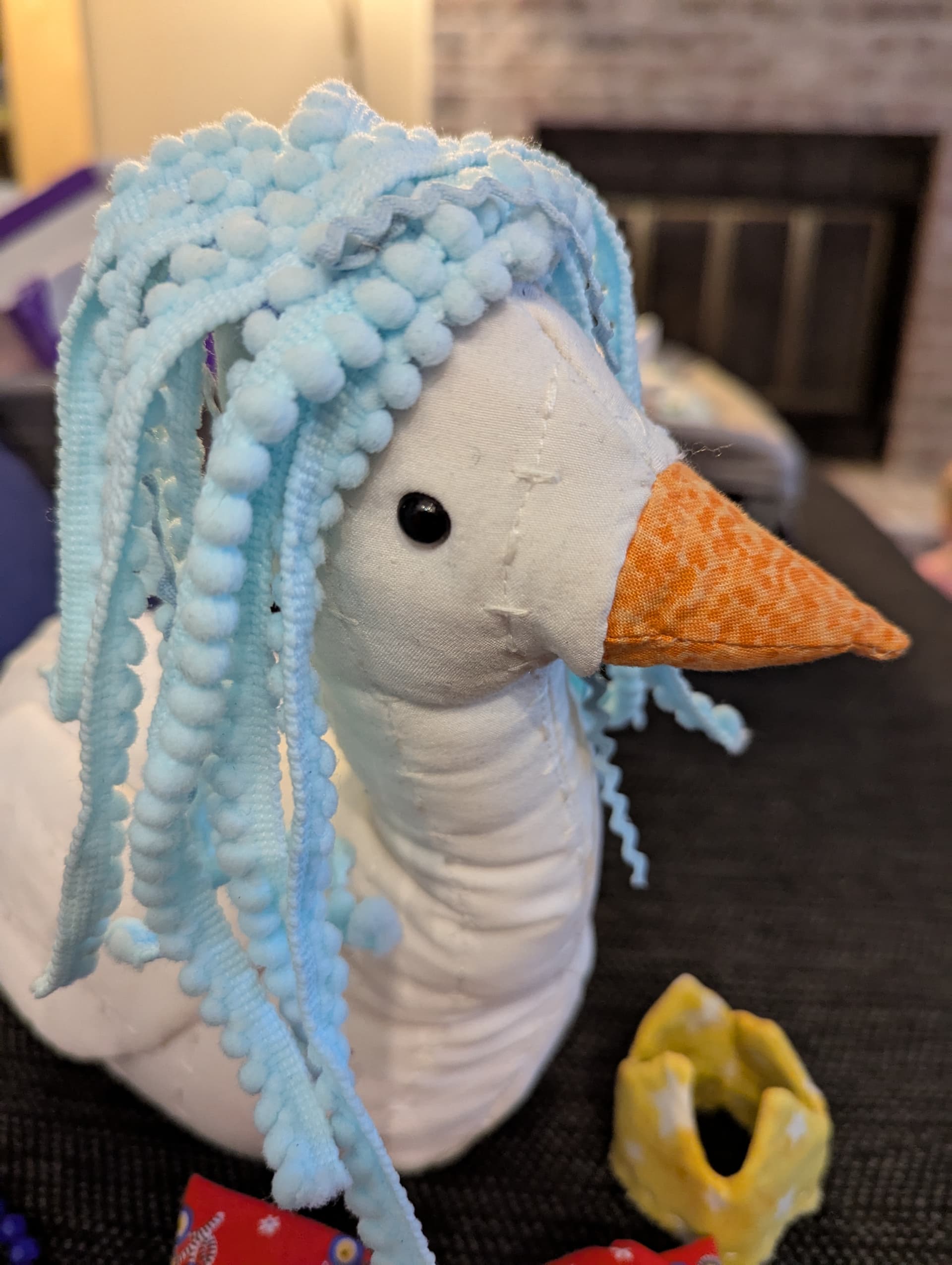 I love the pompom wig! I’ve always wanted one of those geese to decorate all year round!