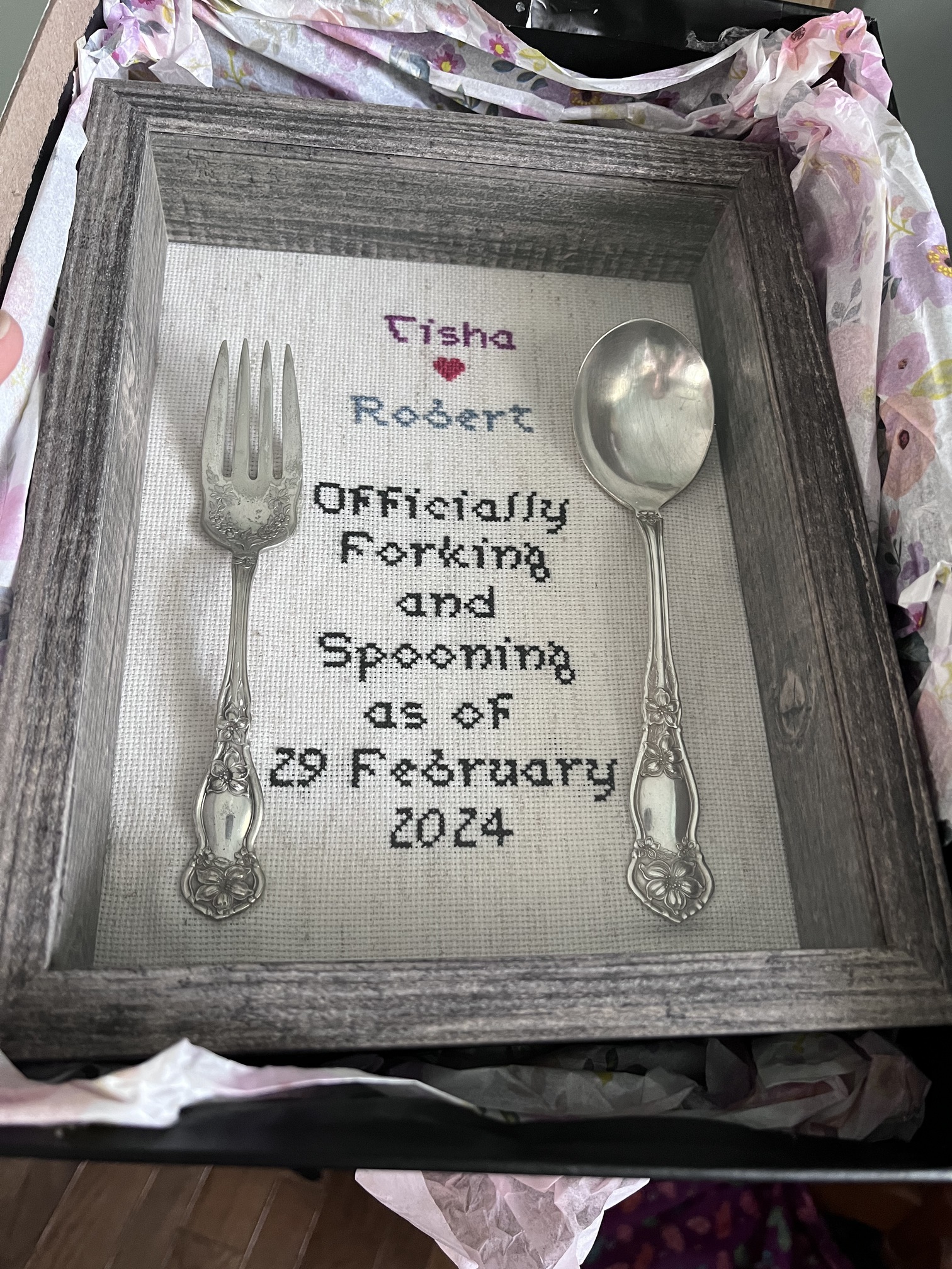 Abbie made this super sturdy reversible fabric basket (Jennie got it’s twin I think) which I love for putting my little knickknacks in. Such a great size. She also included a stitched patch made by someone else on the site (I think?), that is so us, I love it! Not pictured as well were a lot of fun crafty accessories and NJ souvenirs