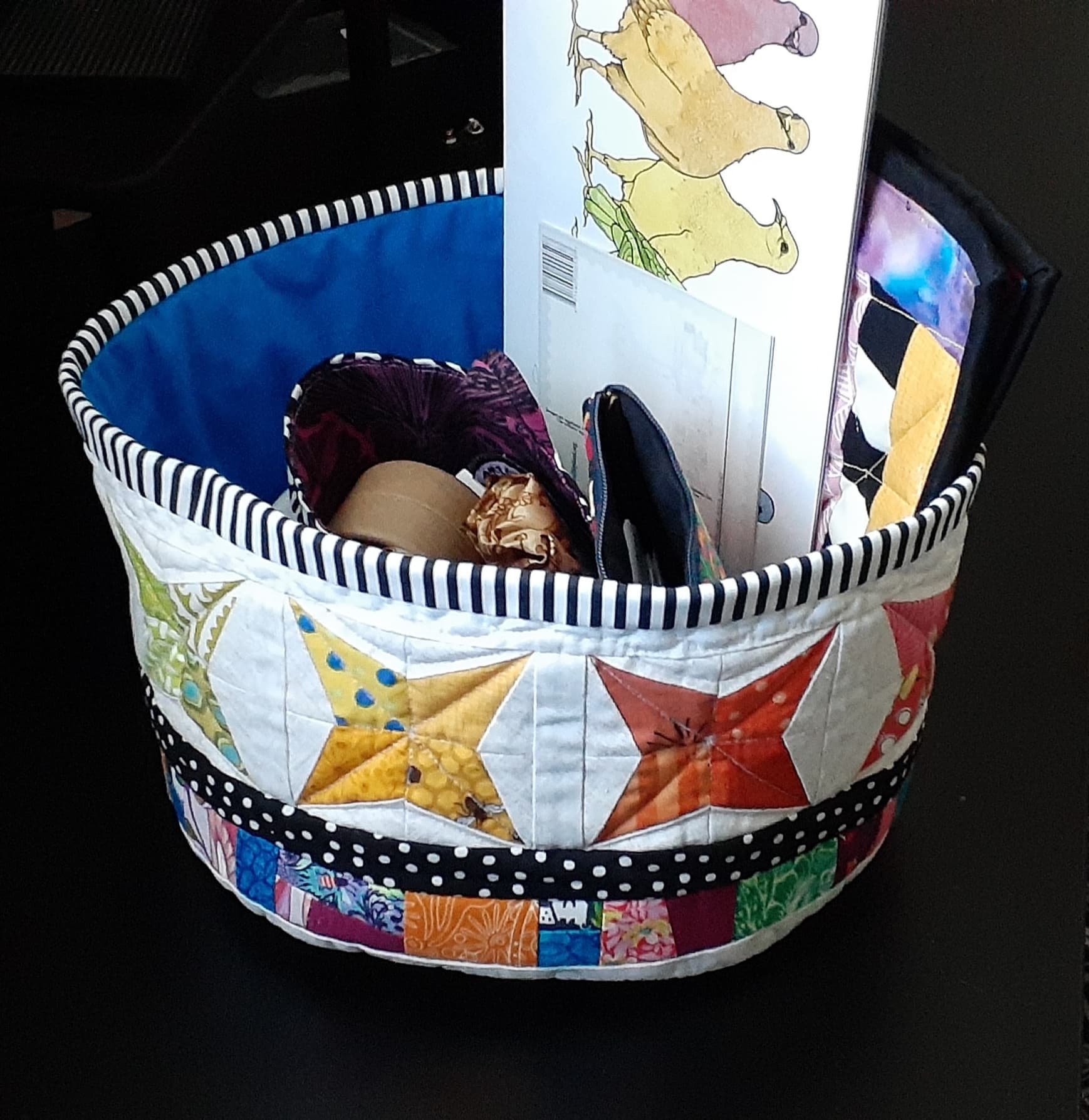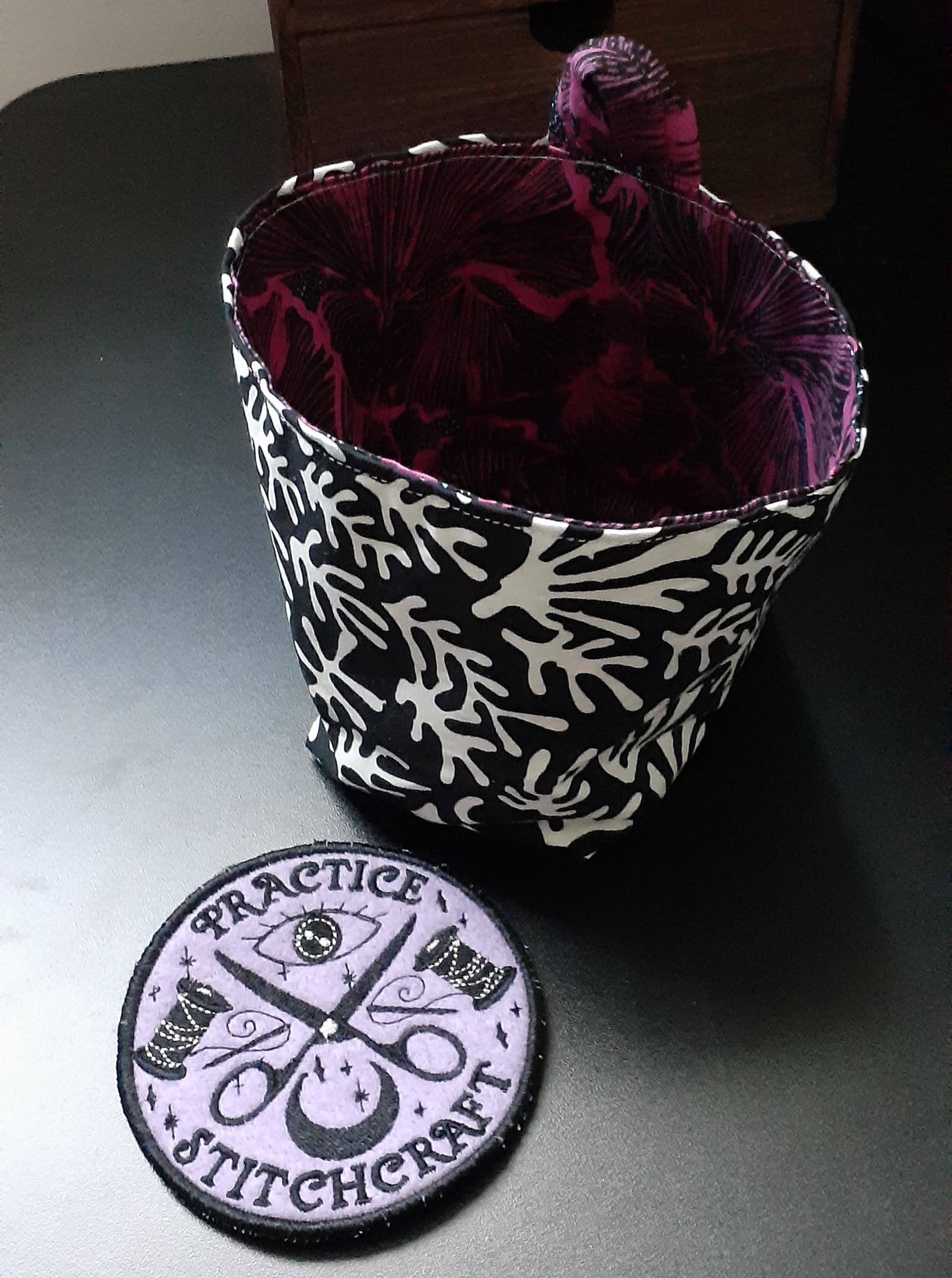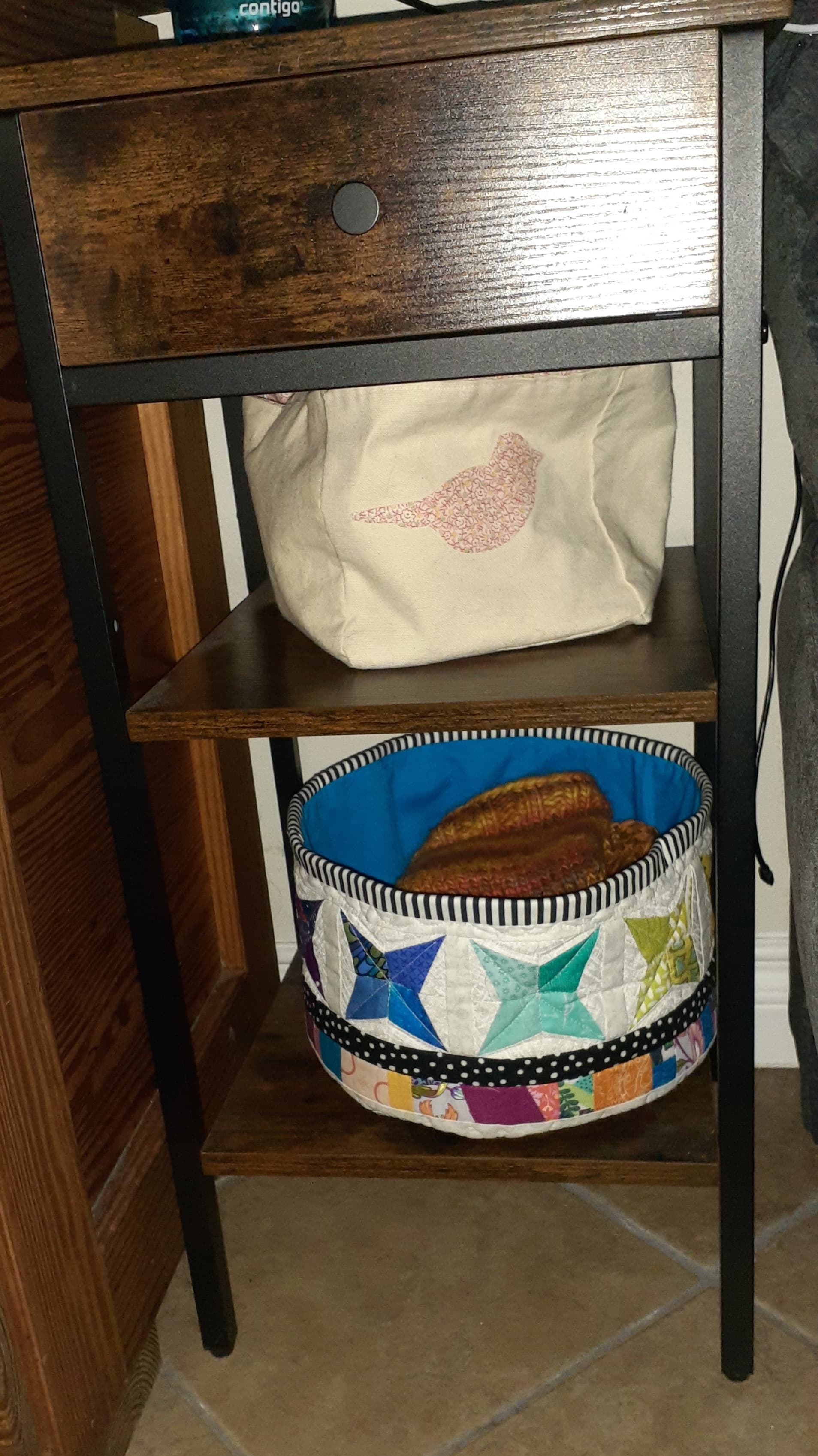 I missed signing up for the Basket swap, so Jennie asked me if I’d swap with her personally instead, and I said “of course!!”. Look at how perfect the bucket basket she made me is! It’s reinforced with a fusible foam? I didn’t even know that was a thing, but it seems really cool, and made an otherwise very floppy structure very sound. See picture below for it’s new home. Such a perfect size.