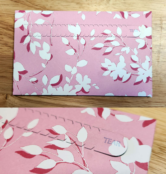 The paper is from the same pad. I stamped a message that will show when the strip is pulled back.