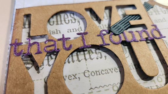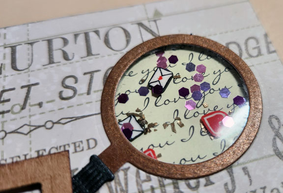 I was inspired by some recent magnifying glass use to make TheMisterT a Valentine card using this little magnifying glass die set I got sort of recently. Then I just started digging around in my paper stash to come up with some that worked. Same with the die and shaker bits stashes.