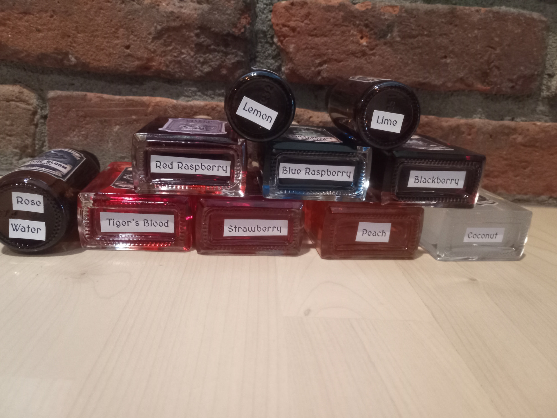 ). I found some fun fantasy potion labels on etsy and printed them on sticker paper. I also printed the actual flavor to stick on the bottom. After much careful cutting, filling, and sticking, we have this rainbow of flavors for the kids to use.