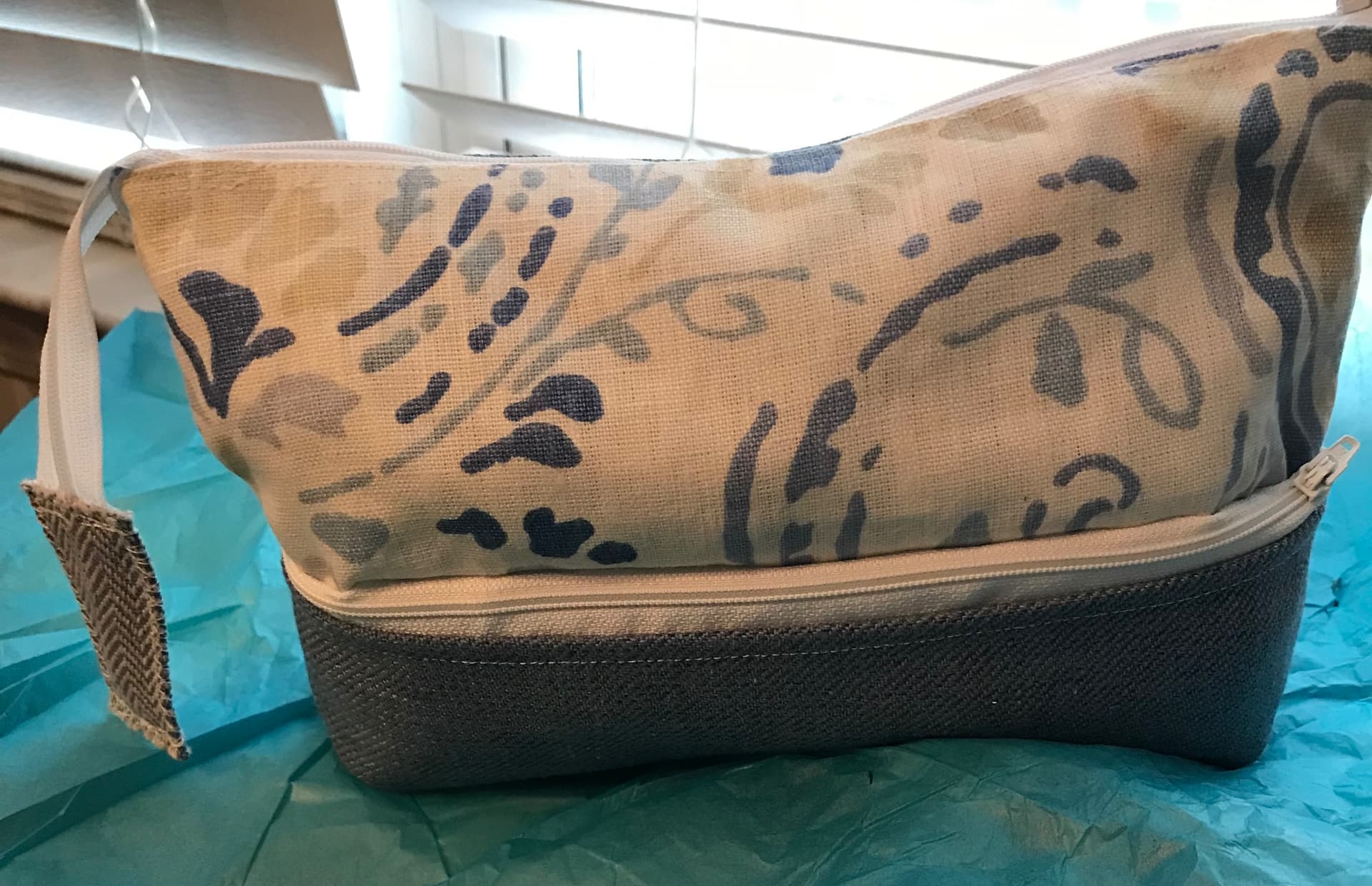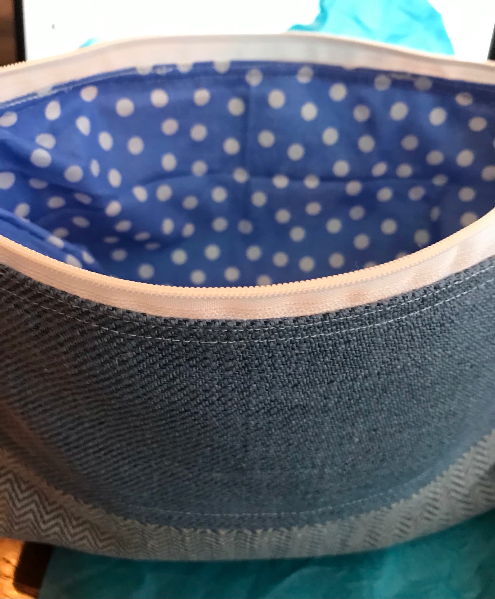 Yes, that is another zipper pocket on the side. The pouch is actually made from upholstery samples. It looks like denim, but it isn’t. It was a really easy way to make sure my fabric all coordinated! Lol!