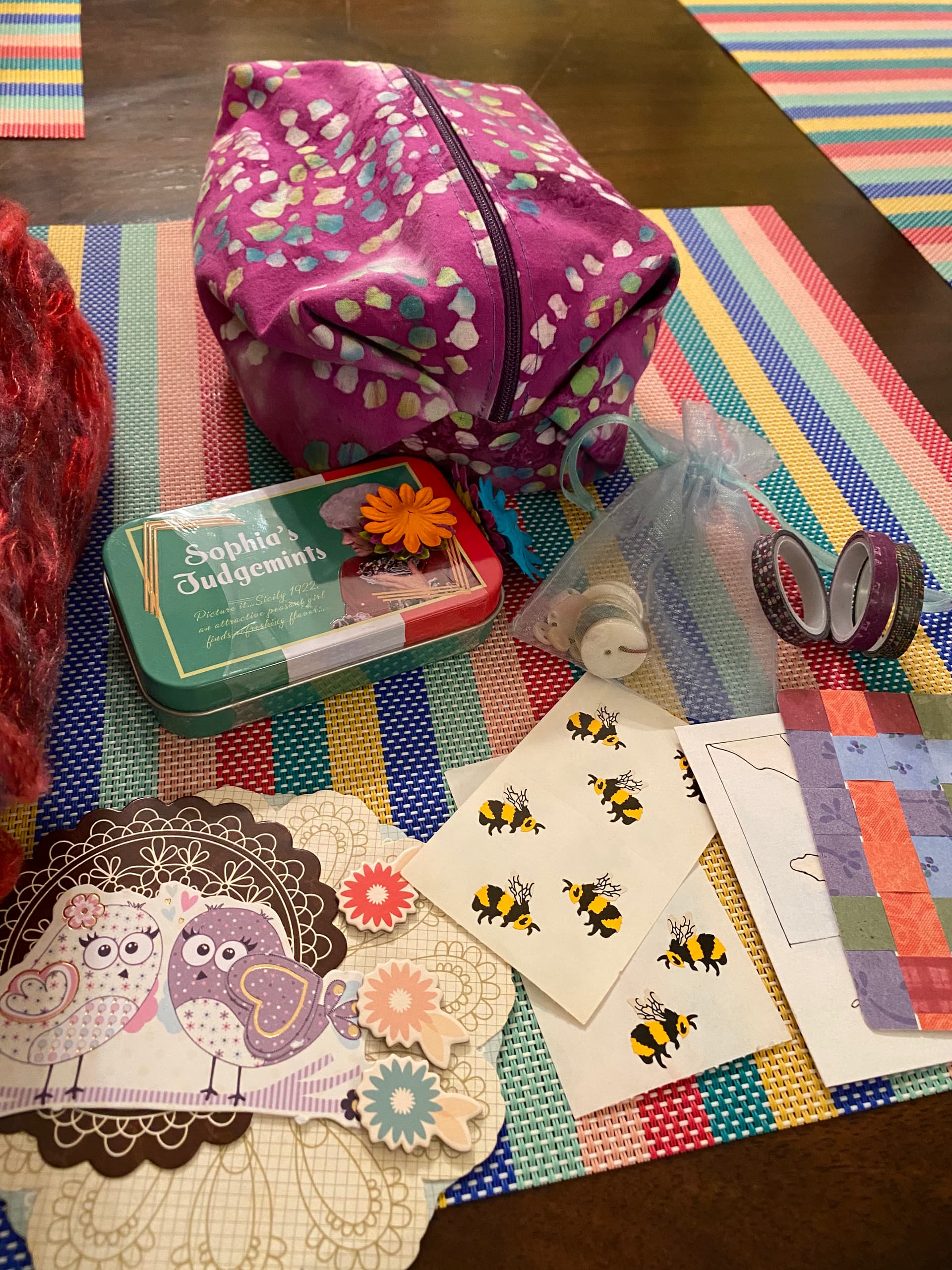 I love the pouch and the Batik! (Put me in the Batik fan club. I really want to put batiking back into my craft repertoire!) But is that a golden girls item in there. I love those ladies. They were so savage! Great swap!!!