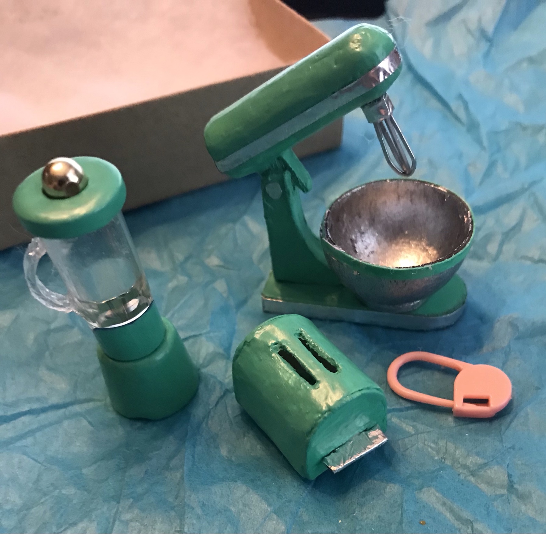 You made those kitchen miniatures!!! WOW! I thought maybe you found them in a thrift store or something…how cool that there are moving parts!