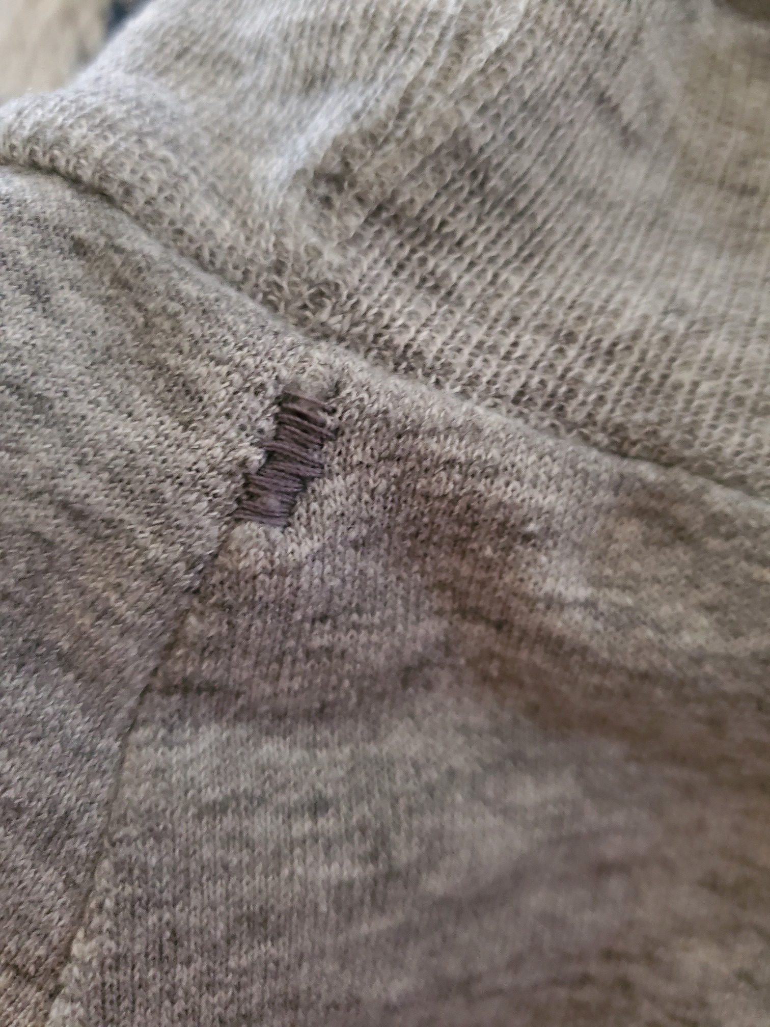Not much of a sewist, but last night I did close up a hole in the sleeve of my beloved Brees(ish)-era* Purdue Football hoodie. The shirt is so worn that patching it may have been largely futile, but I’m not giving this sweatshirt up until the washing machine eats it.