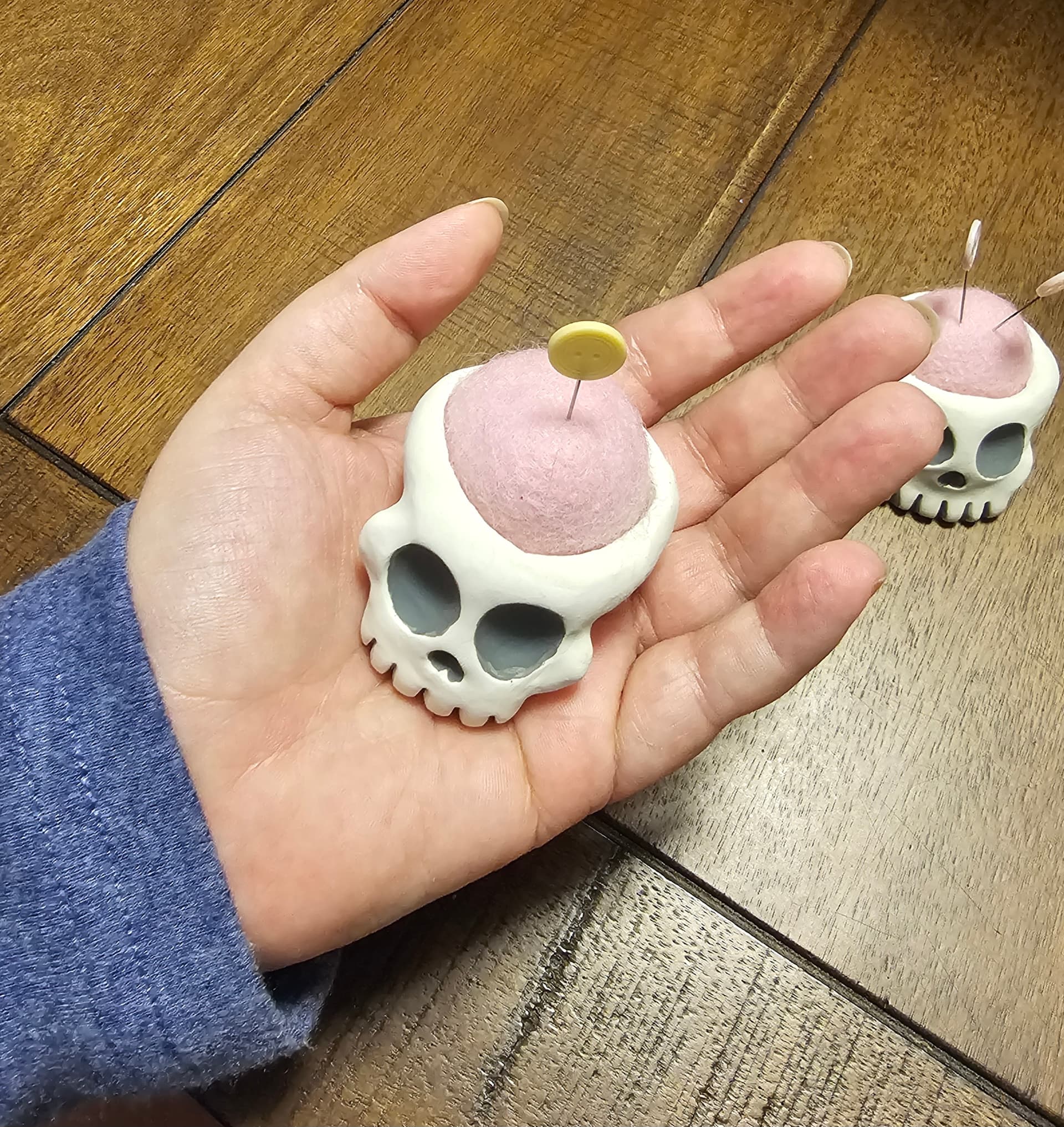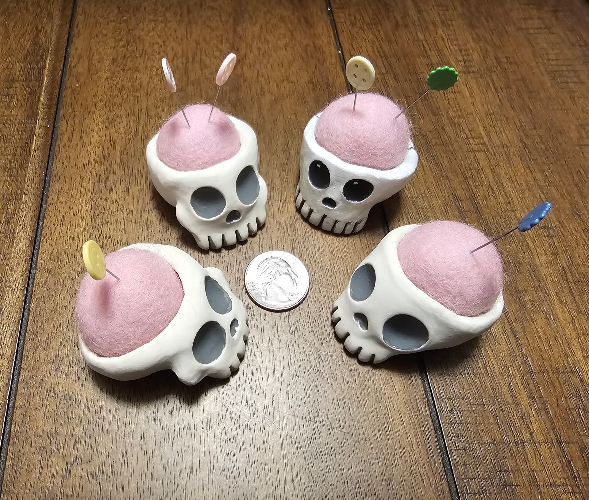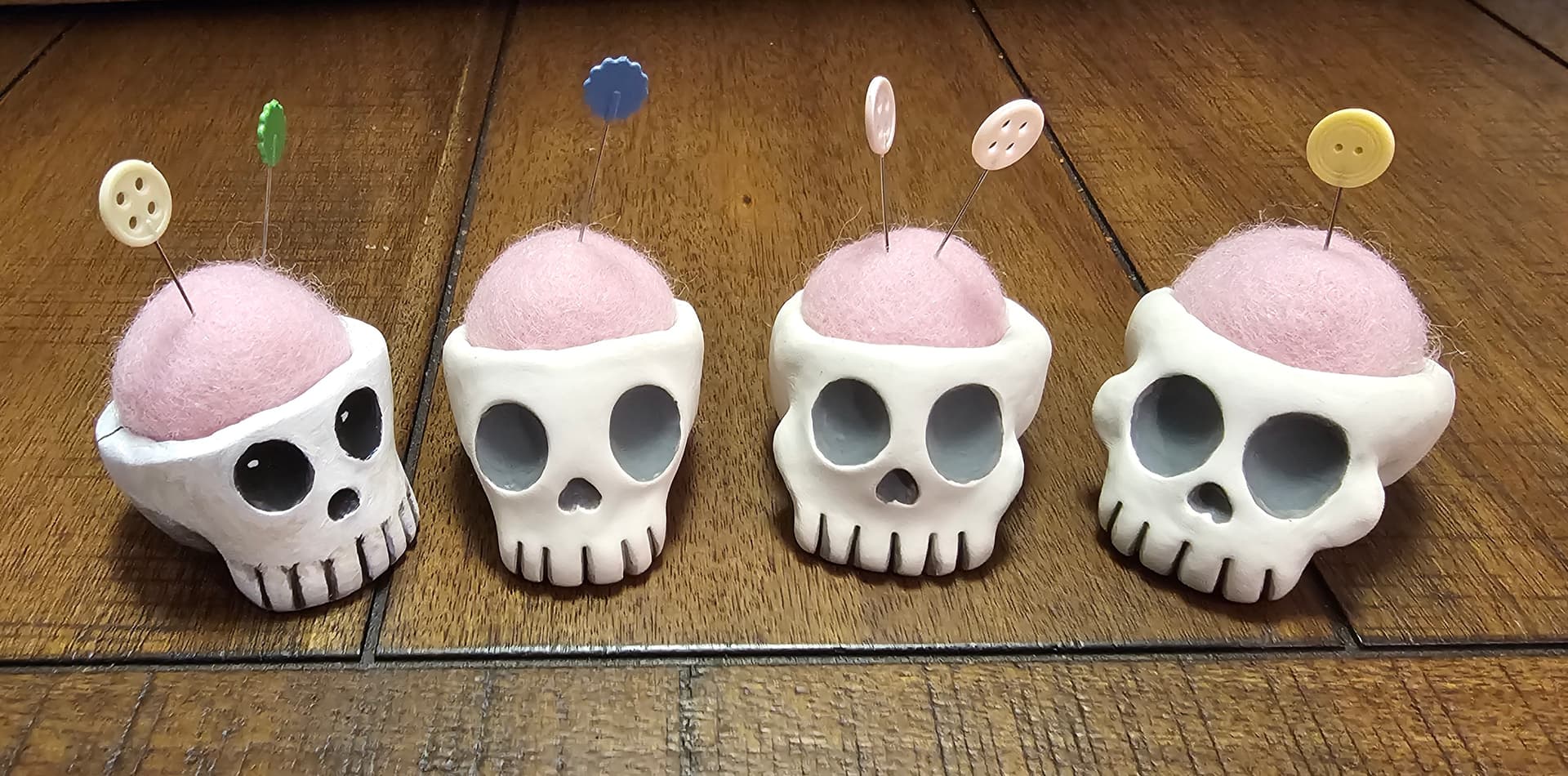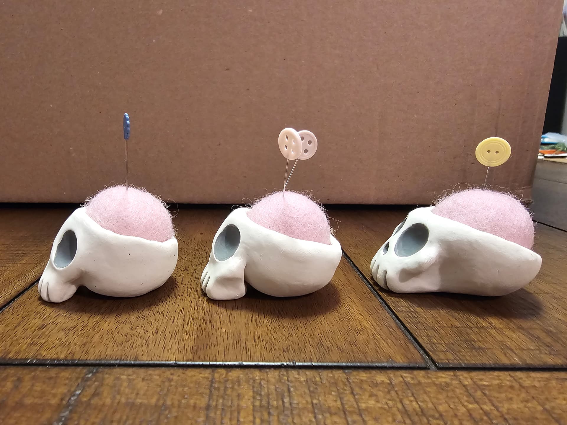 These little skull pincushions were made for STS. As soon as I saw the felt balls, I knew what I had ot make.