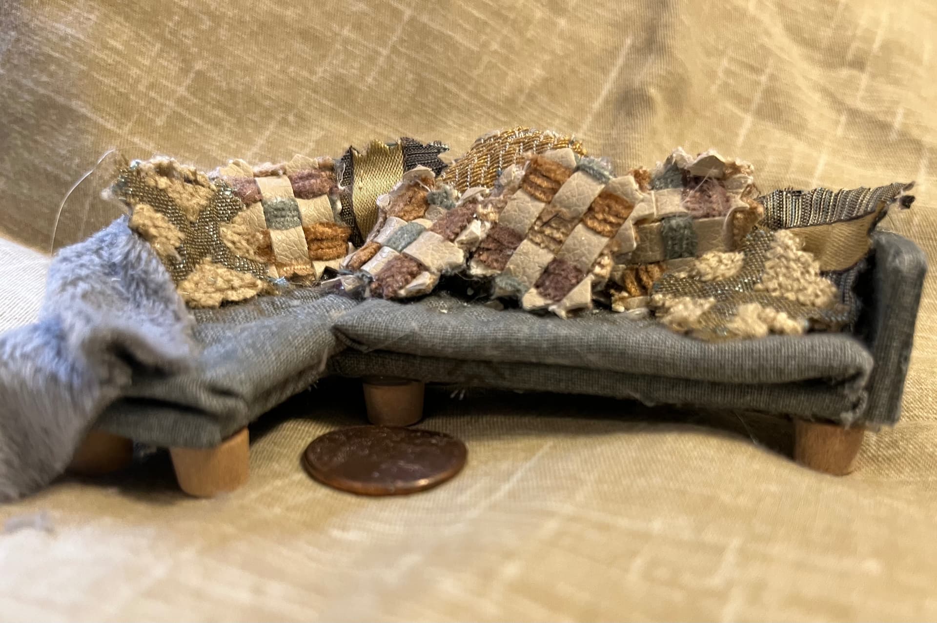 You did a great job on this! Iโve been making a few mini items and I now have a whole new appreciation for miniature makes! That minky throw is the perfect finishing touch. It makes the couch look cozy and inviting!