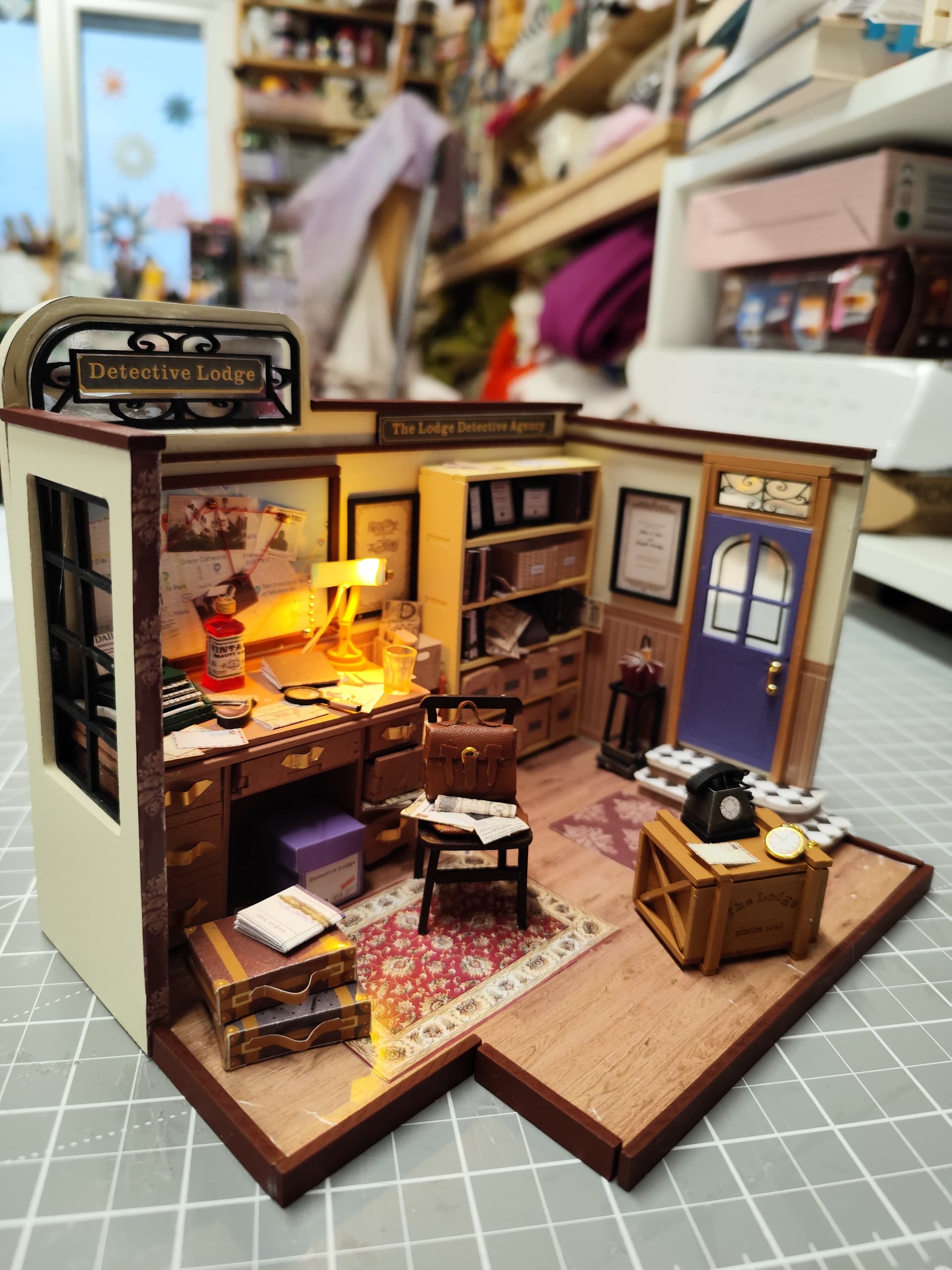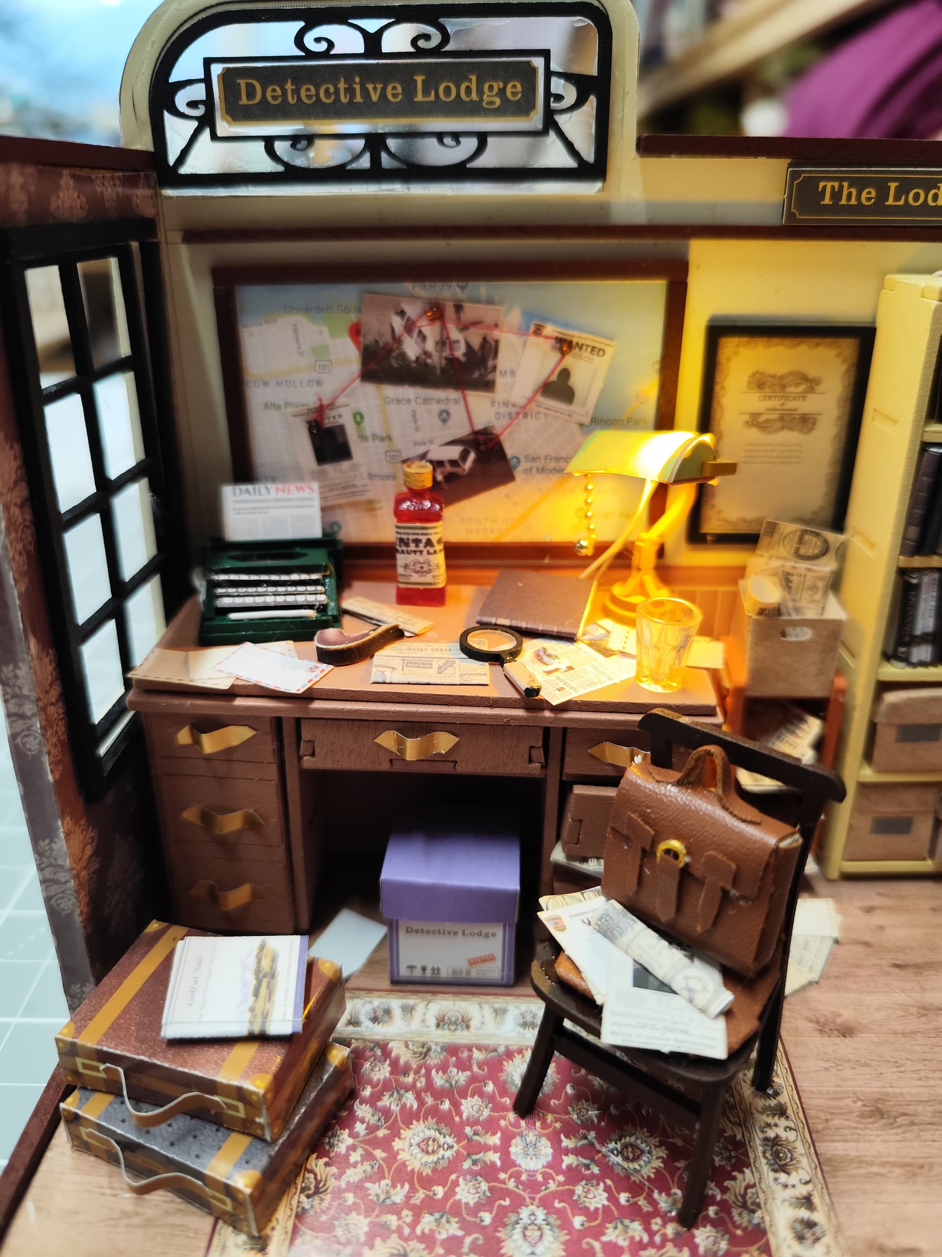 Some nice little details with the typewriter and lamp. The wee magnifying glass even has “glass” in it.