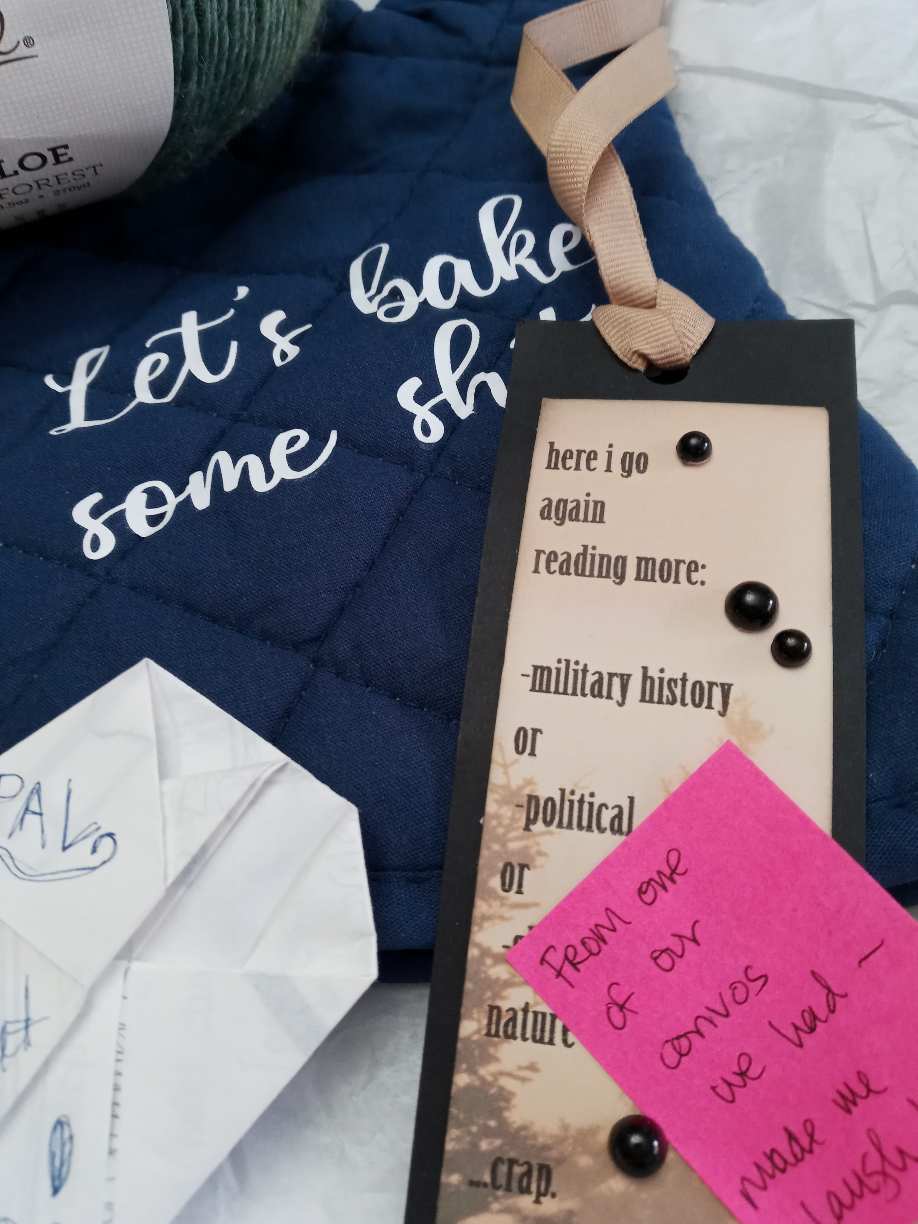 also…i received the most amazing package from @curiousfae today!!! which definitely has improved the miserable week i am having!! i hope i arranged everything artfully enough to keep the swears to a dull roar (i haven’t figured out how to blur stuff yet…)