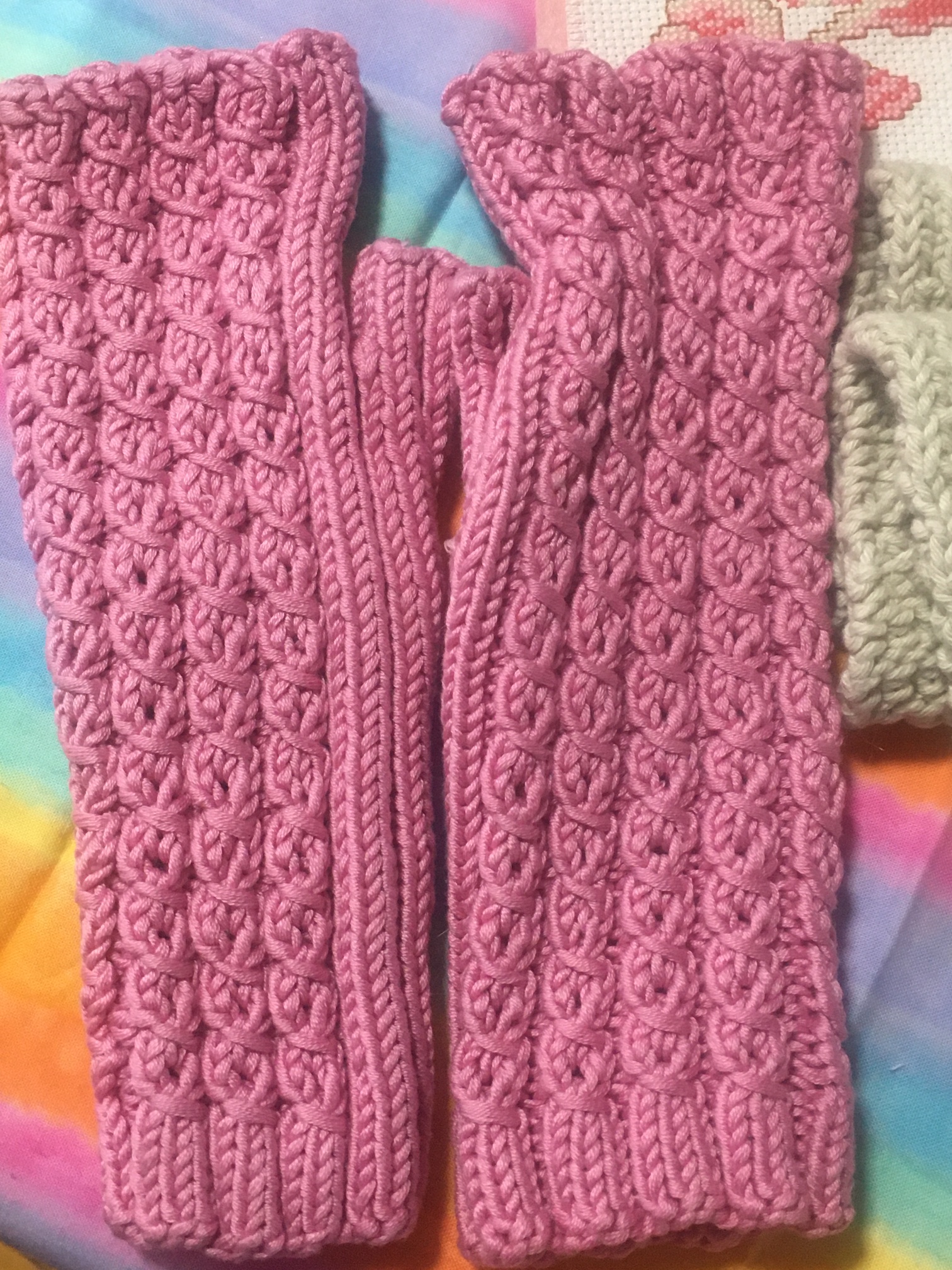 Then for me are 2 crochet dish clothes. BUT she felt those are something I like but not really for me, soooo she whipped up some ever so soft fingerless mitts in cotton so they can be worn all year!