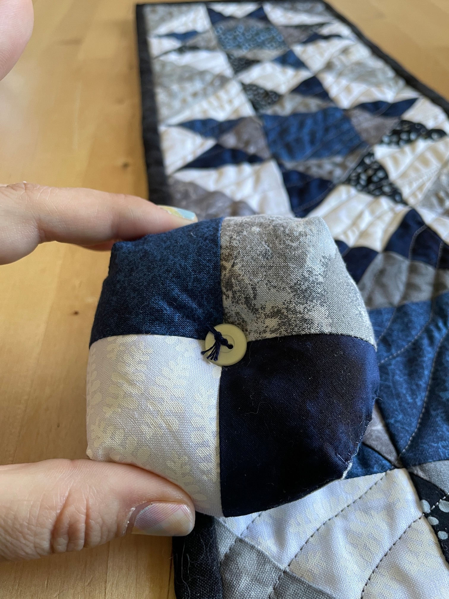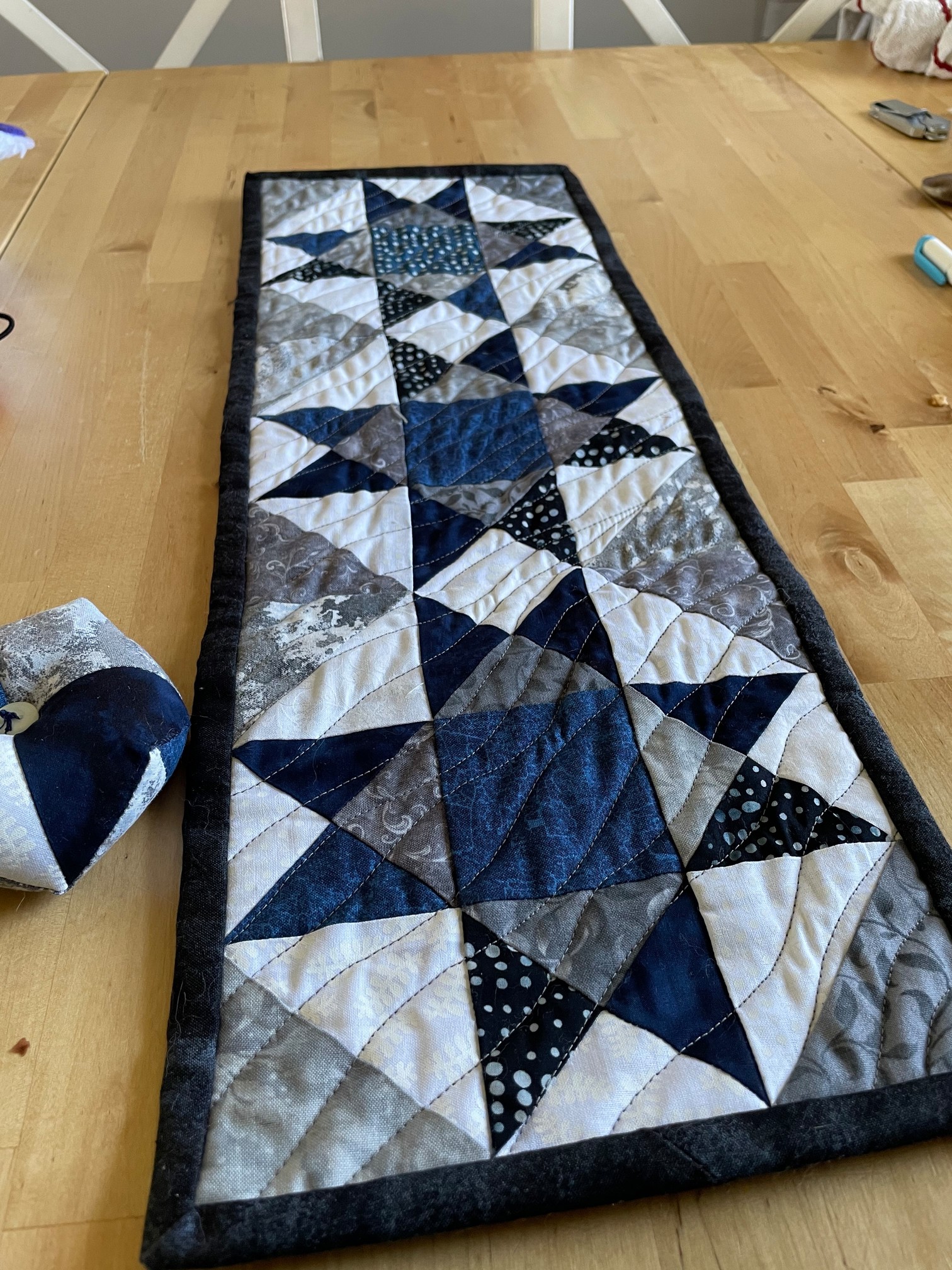 I requested a quilty thing and she delivered! A little table runner for my desk upstairs in grays and blues.