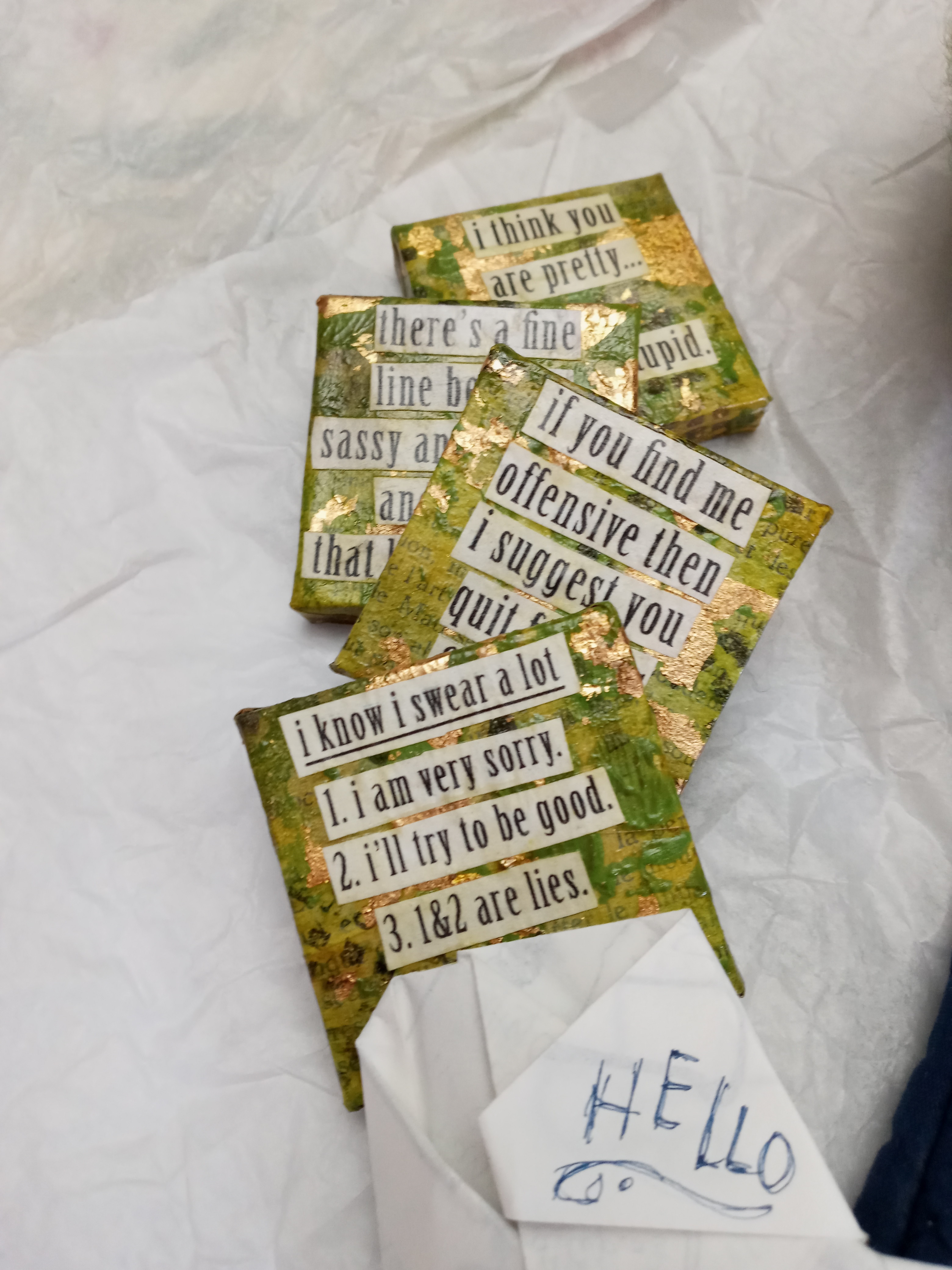 THOSE MAGNETS!!! they are THE BEST!!! and will live on my fridge in infamy!! i love them!! (really i love EVERYTHING, but yes. they are very ME…)