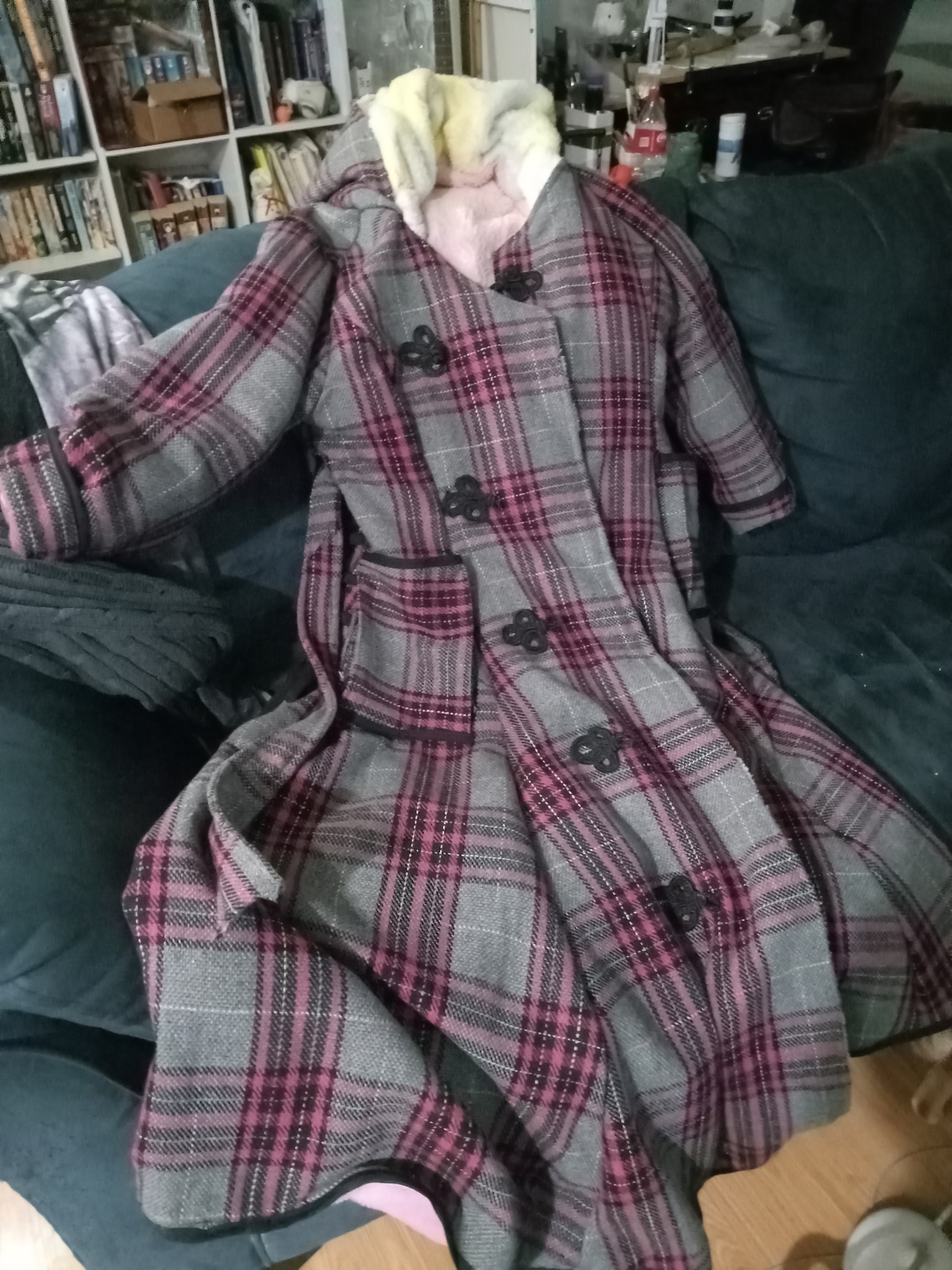 I think the plaid fabric and those frogs make it probably more stylish than you think you look. Isn’t everyone all bulky looking when it’s -25?! (Or else they’re freezing!) It looks like the coziest coat with the repurposed-blankets liner!