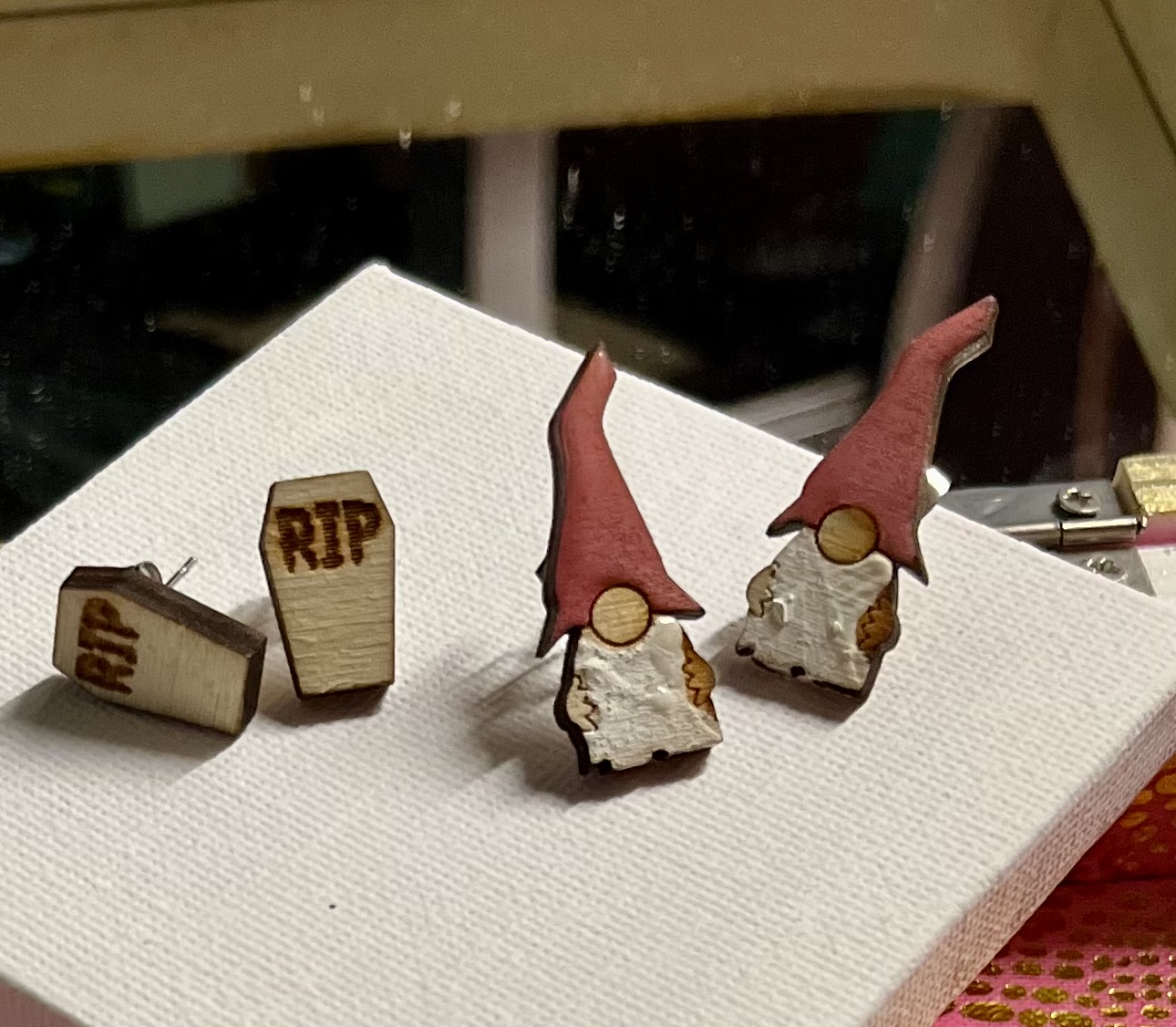 I love the guy on the top with his little kitten. And the gnome earrings make me smile!