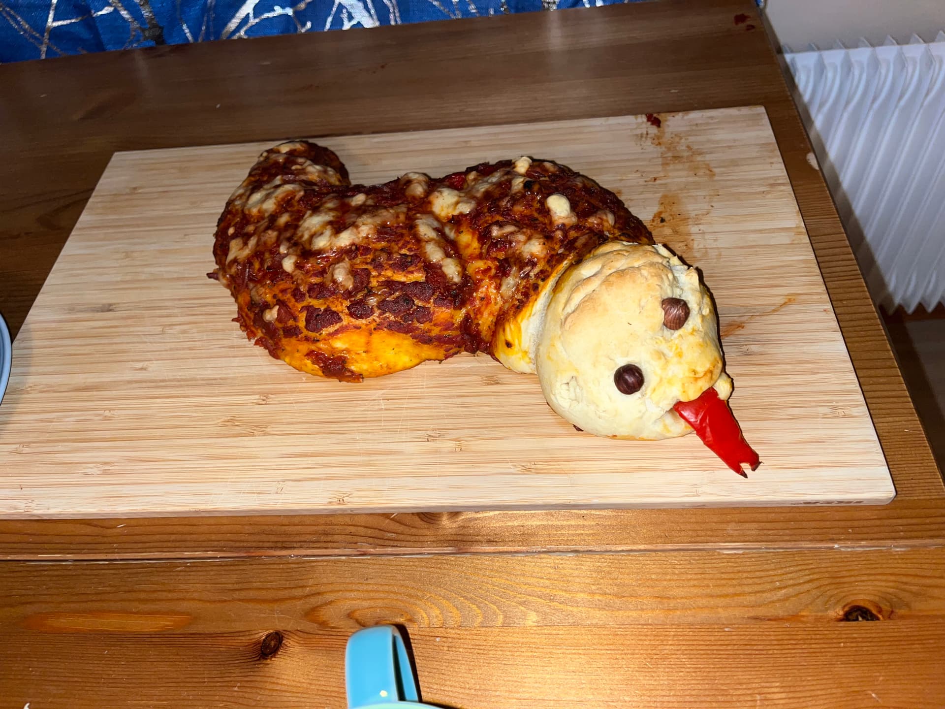 I loved her reaction when she ate a piece of the head: “That’s pretty good, too. Now I also know how to make dinner rolls and the dough wasn’t even hard to make.”