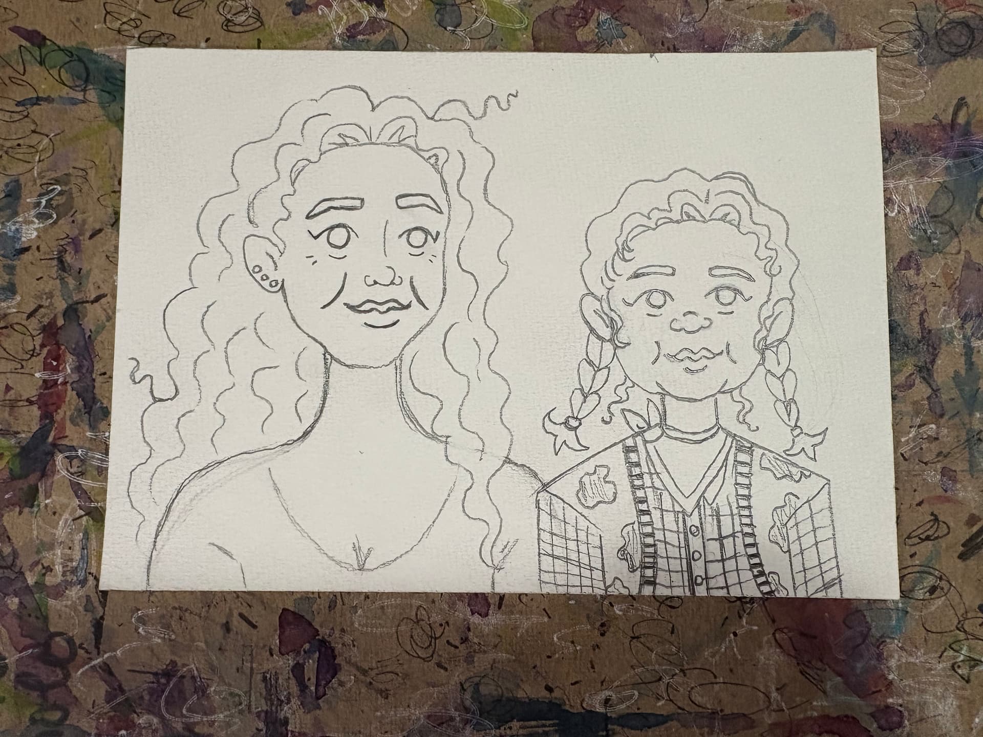 Last month I was telling my nail gal about the personal swaps I’ve participated in on here, and she asked me if I was interested in trading my nail service for a portrait of her and her daughter. I said yes, so I got a free service and she got awesome artwork! I can’t include any of my references, but one of them was her daughter in a Toy Story costume, so I put her in it and did the background like the movie. My nail gal loved it! 5x7 watercolor and crayon!!