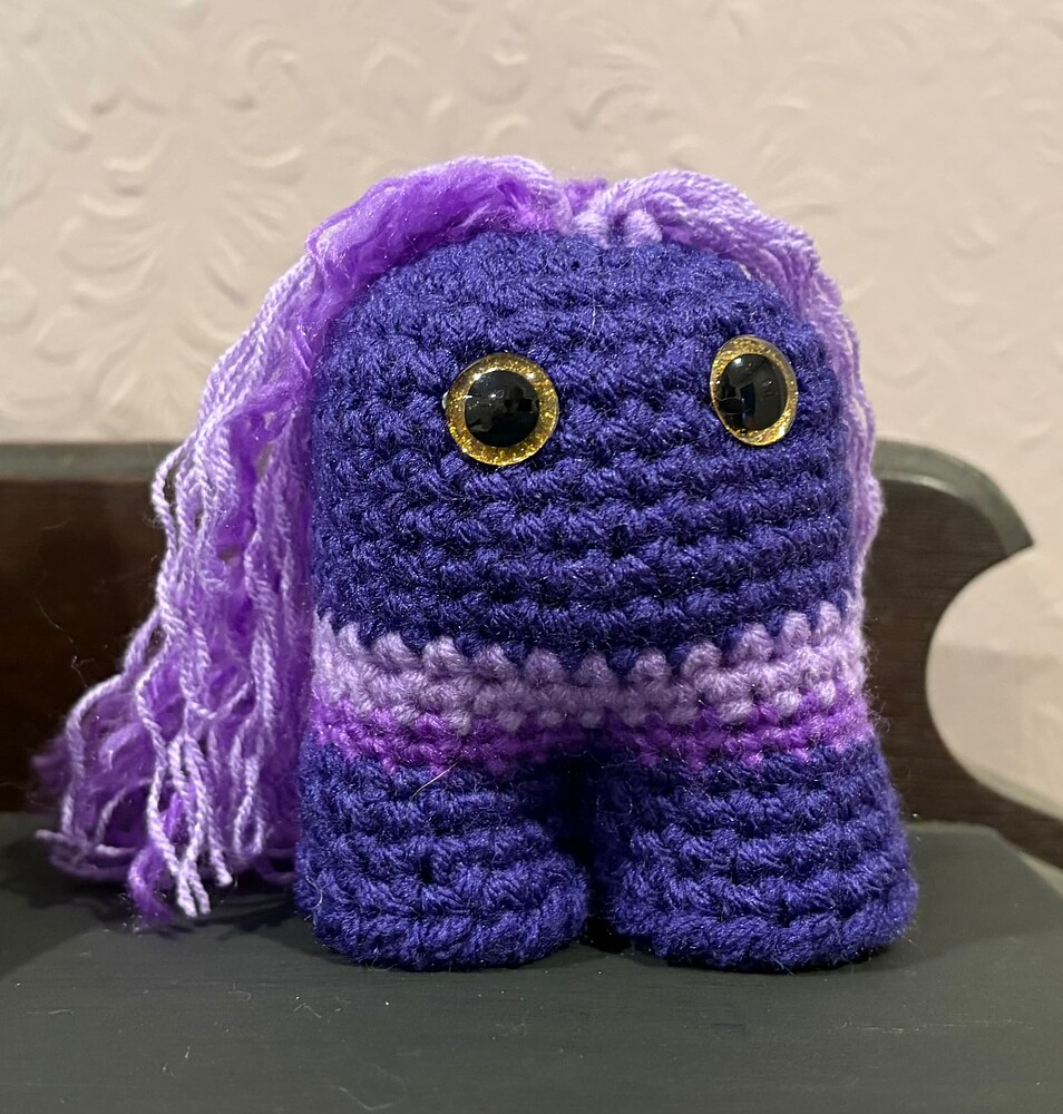Brief Description: I made this for a former student (she’s under 18, so still a child, I say), and it it has pastel purple in it, and has soft and fluffy hair!