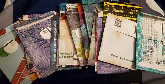 Brief Description: Last year I made an envelope-based advent calendar with numbers written on for the days. But a lot of them were hard to read, so this year I used a circle punch to cut numbers from one of my 18 zillion stash calendar pages and glued them on.