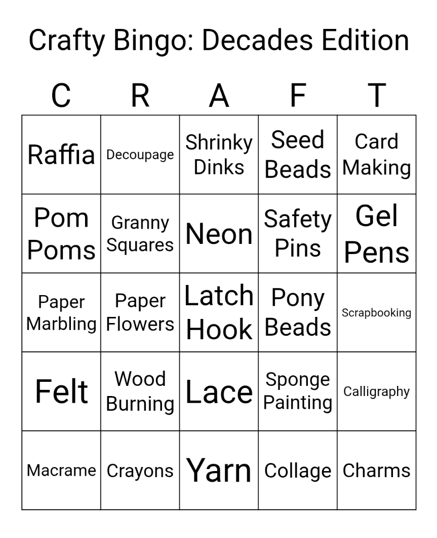 Sooo… (I don’t know why my brain is stuck on just doing everything in my 80’s column)… if I made a “plastic canvas” project out of something else, but was specifically originally a trendy thing with plastic canvas in the 80’s, do you think that would that count? I don’t want to cheat and skirt the rules!