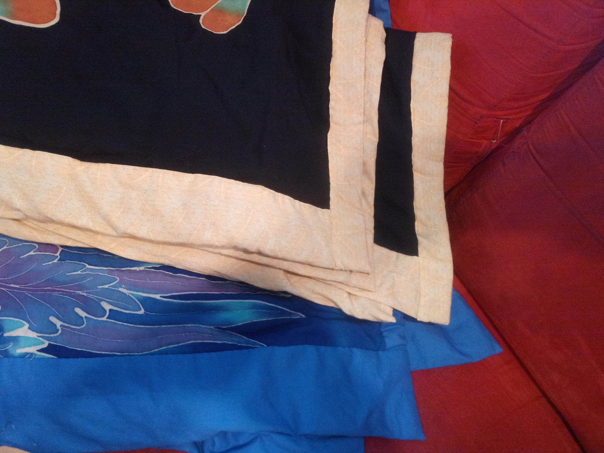 Brief Description: We have some lap quilts on the couch that have been well loved over the past two decades. The binding on both was falling to bits, it was shredded and constantly losing pieces. Despite not having any experience with quilting, I took it upon myself to mend them. I picked some coordinating fabrics from my stash, and got to work. I sewed the first yellow binding by machine. The blue quilt was in worse shape, so I hand sewed it. It took ages, but they are both lovely and functional once more.