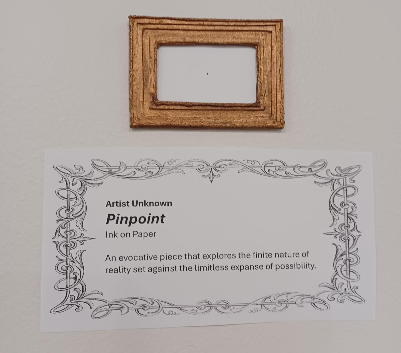 Brief Description: We have a very large wall at work that is devoid of any artwork since we moved in. Some people like that, some people do not. I fall into the latter camp, so took it upon myself to put up my own artwork… I made the mini frame with cardboard, crochet cotton, paint, and lots and lots of glue!