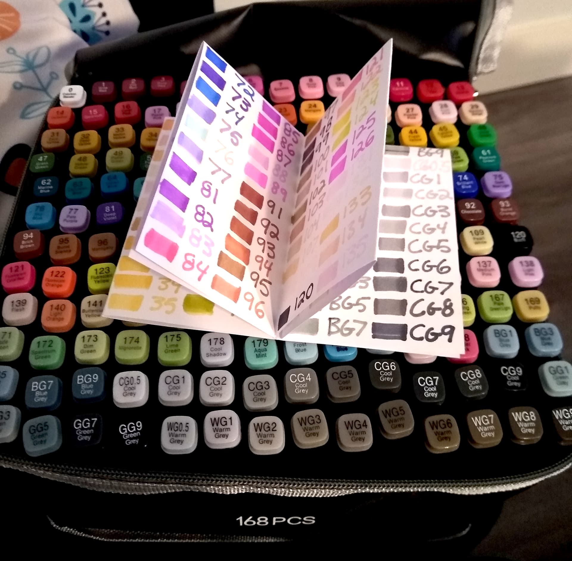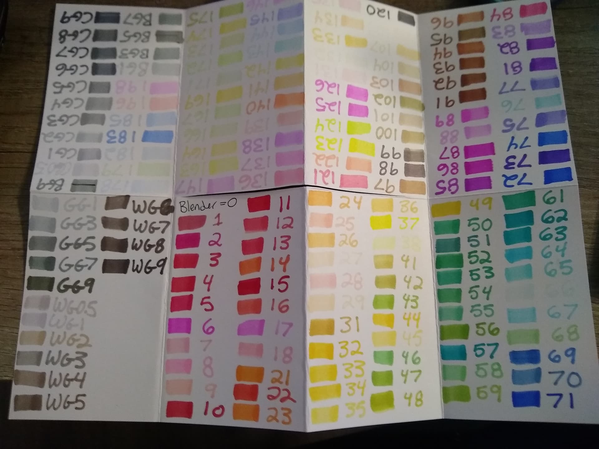 Event: Reading Rainbow Prompt: Free Range Team: Veggie Vigilantes Project Name: Alcohol Markers Organization & Guide Project Link: N/A Brief Description: I ordered a set of alcohol markers (because I needed another art/craft medium ) and they came just randomly put into the bag. So I sorted them by number, which was also (more or less rainbow order). I also made a little one-sheet zine guide with all the colors, since the color of the marker ends don’t really represent the actual colors. This took way longer than I want to admit… Project Photo(s):