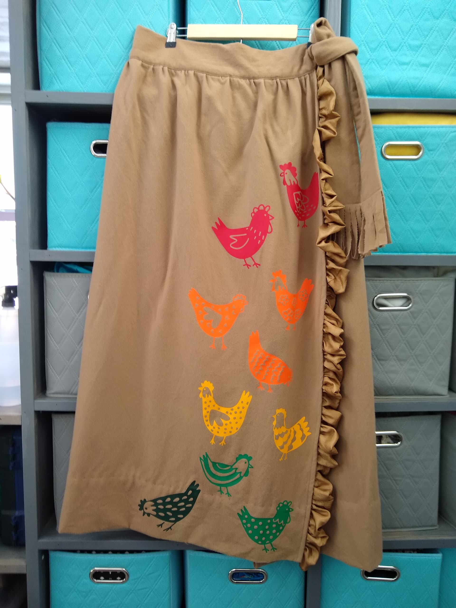 Event: Reading Rainbow Prompt: January -The Glitter House on the Prairie Team: Veggie Vigilantes Project Name: 70s Wrap Skirt (with Chickens!) Project Link:70s Wrap Skirt (with Chickens!) Brief Description: The skirt is brown (with a rainbow of chickens!) and could be considered old-fashioned since I used a 70s wrap skirt pamphlet pattern. Project Photo(s):