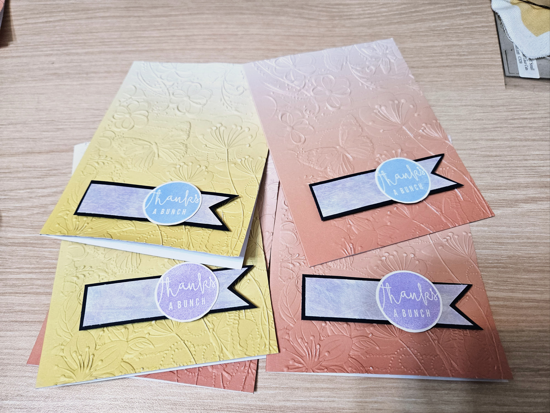Brief Description: Some quick thank you cards that I cut sentiments and accents for.