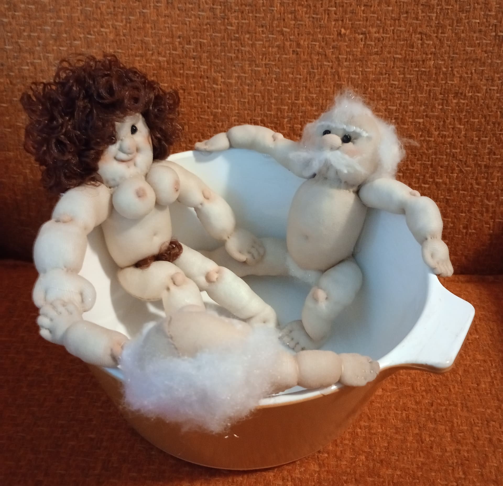 These are absolutely hilarious! I keep thinking that this was in a magazine so a bunch of people would have displays of old naked people in a tub in their house. Bahaha!