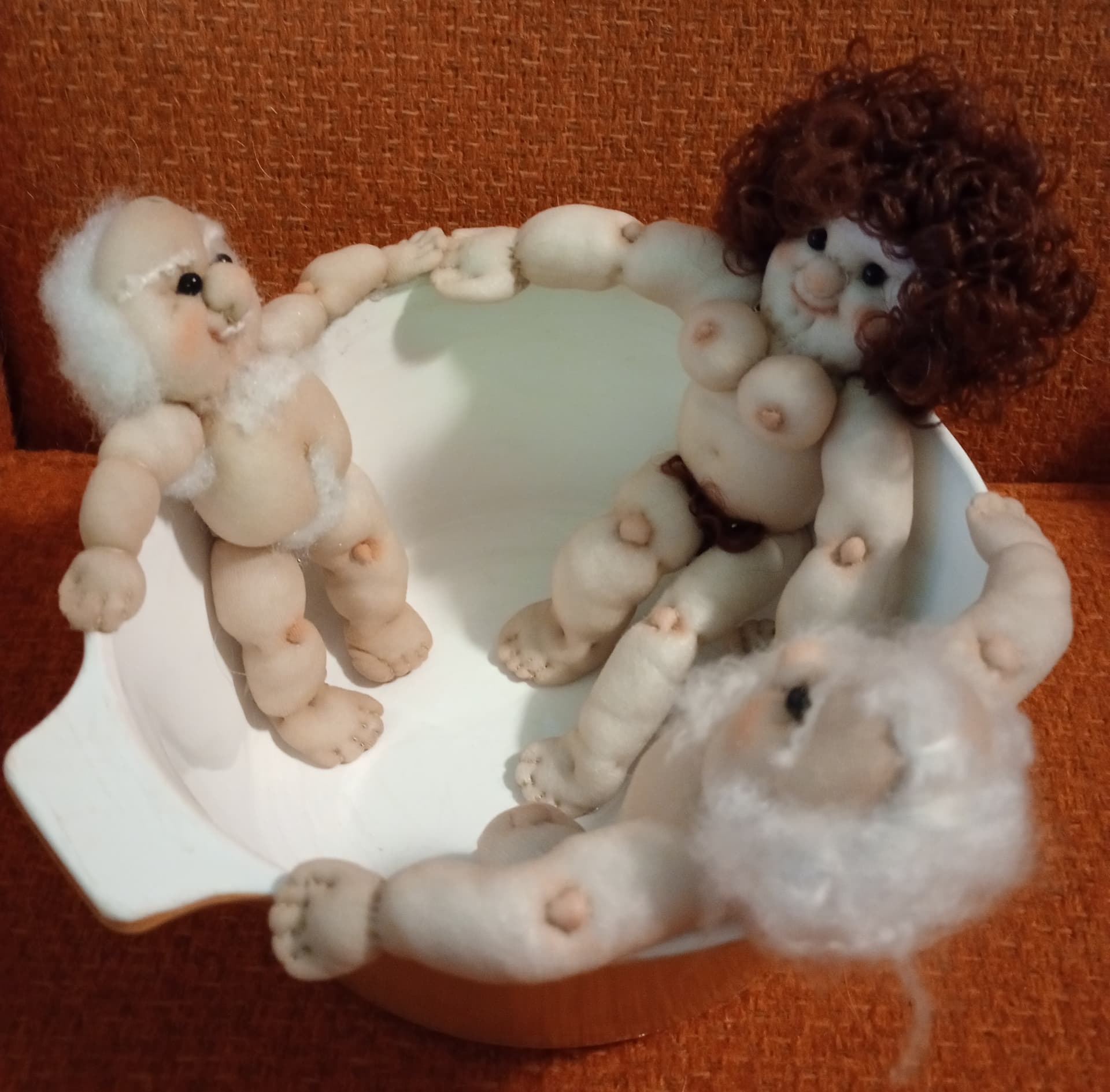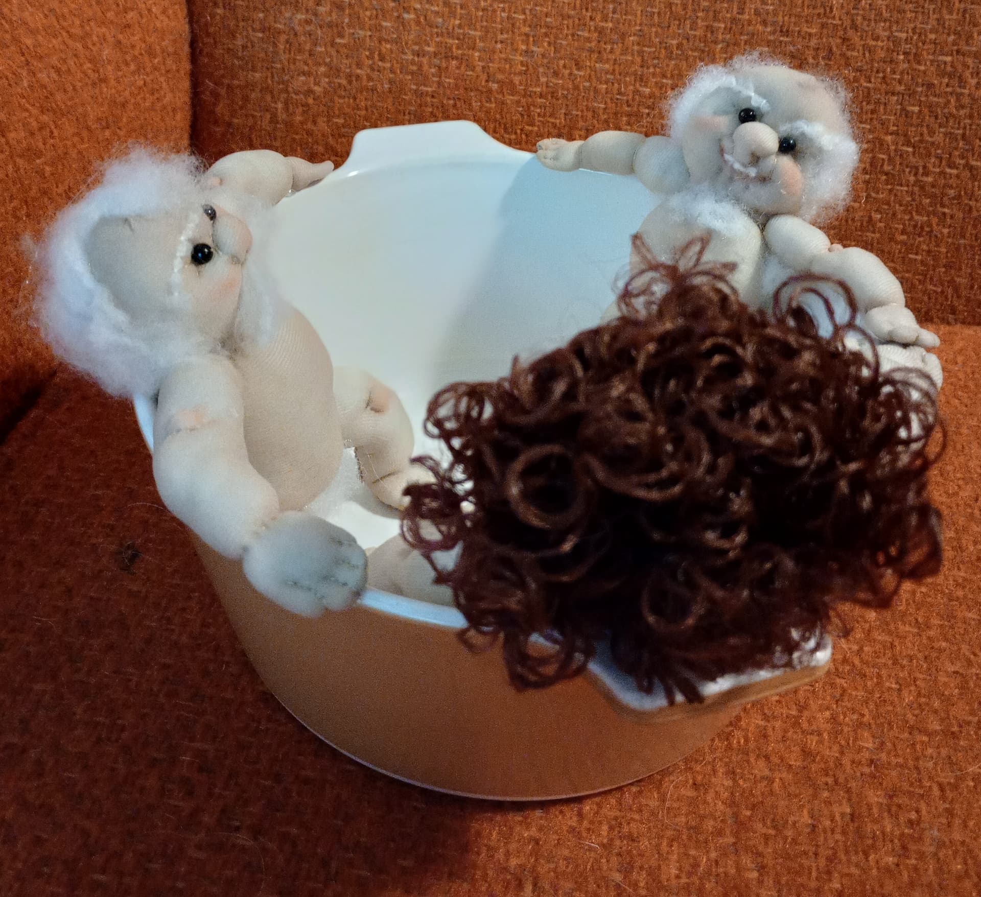 I found a Vintage magazine on how to make freaky pantyhose dolls and this was one of the projects. I couldn’t resist. I had to make these gross old people dolls. Sorry not sorry?