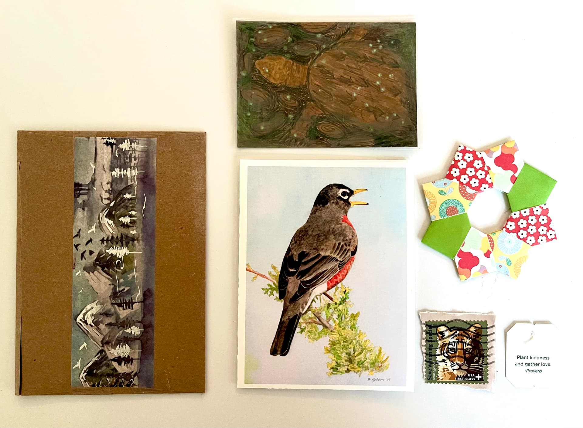 She also sent along an enchanting little envelope with origami, a tea pull message and stamp! I also adore and collect stamps:)