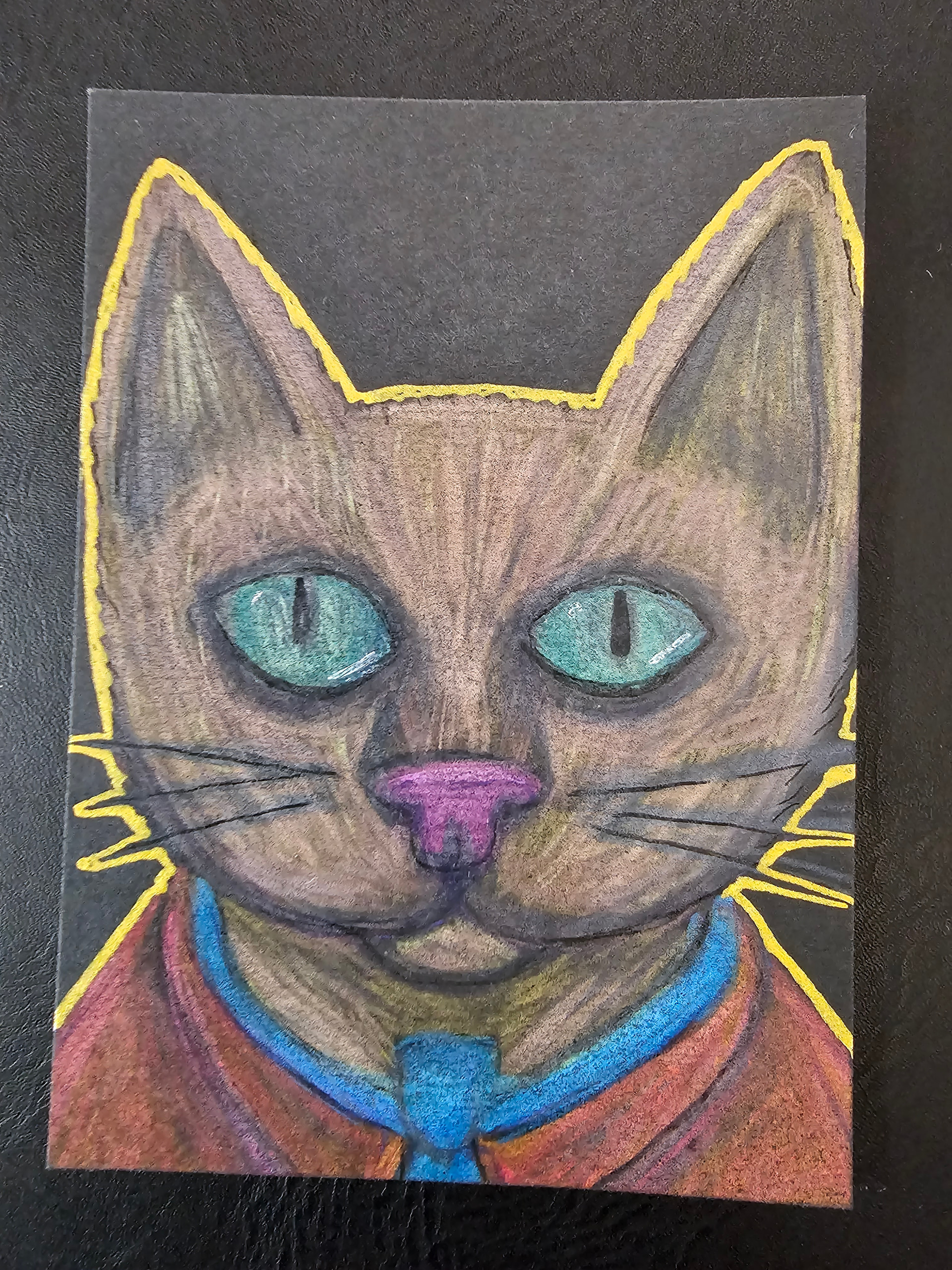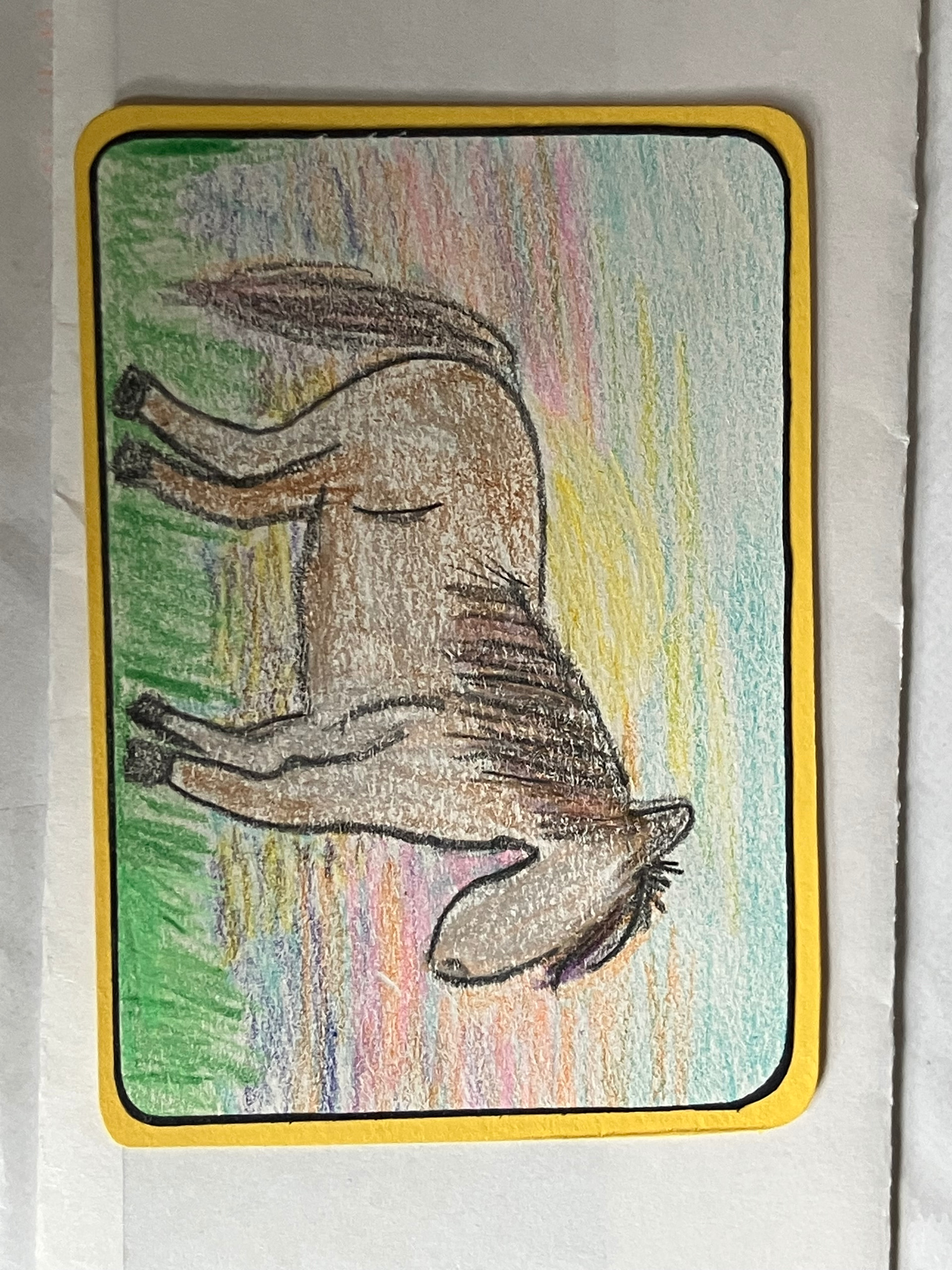 So, I have been using the ATCs as warm ups and experiments in art. I am currently having a massive experimental fail with “petroglyphs” but it’s also a huge lesson in how different art materials do or don’t work together. Starting over now with materials I know work together…